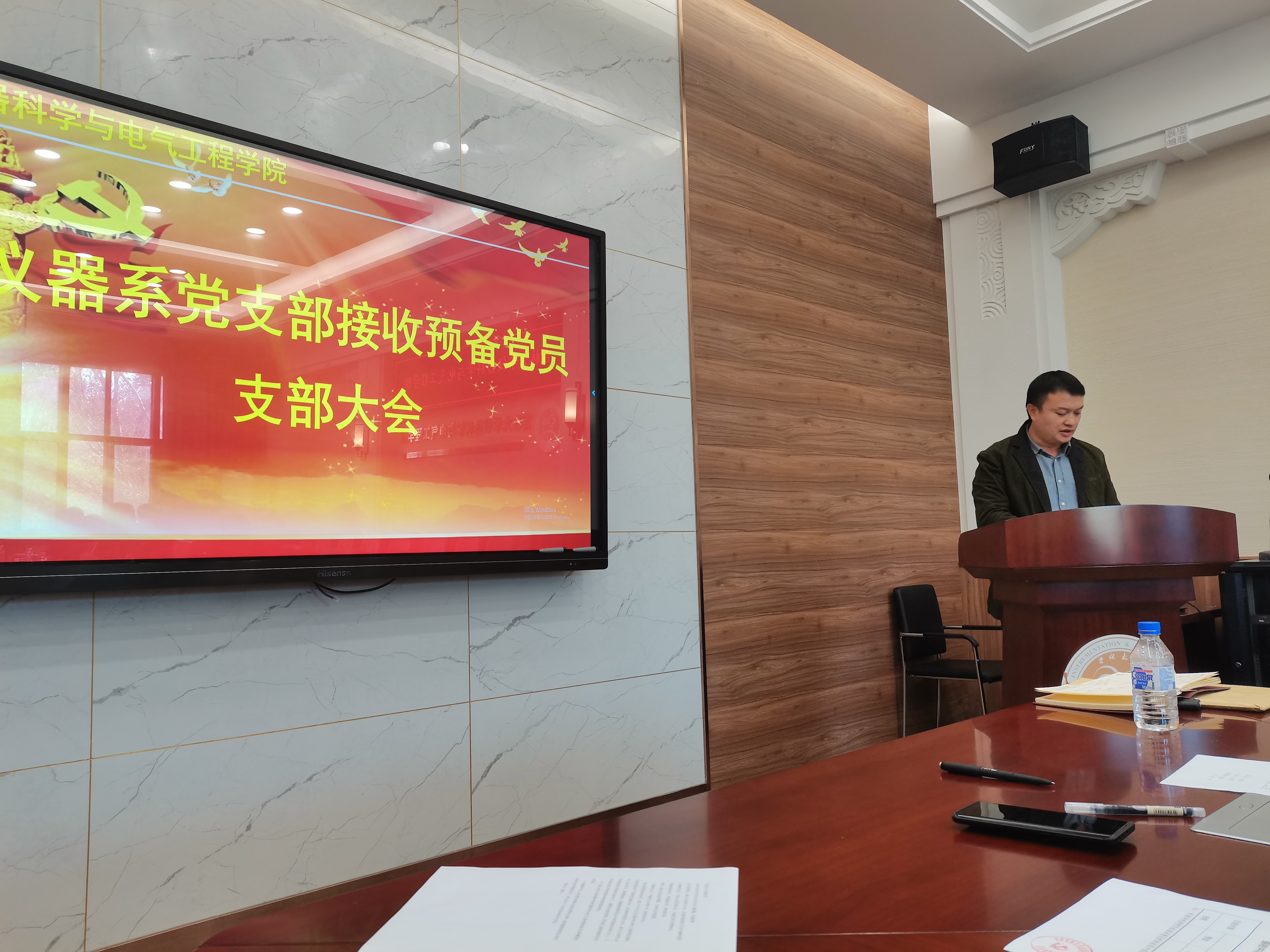 仪器系党支部在地质宫330召开支部党员大会,专题讨论关于接受张帆同志为预备党员的工作。党支部16名正式党员参会,会议由党支部书记陈晨同志主持,香港六合彩开奖号码