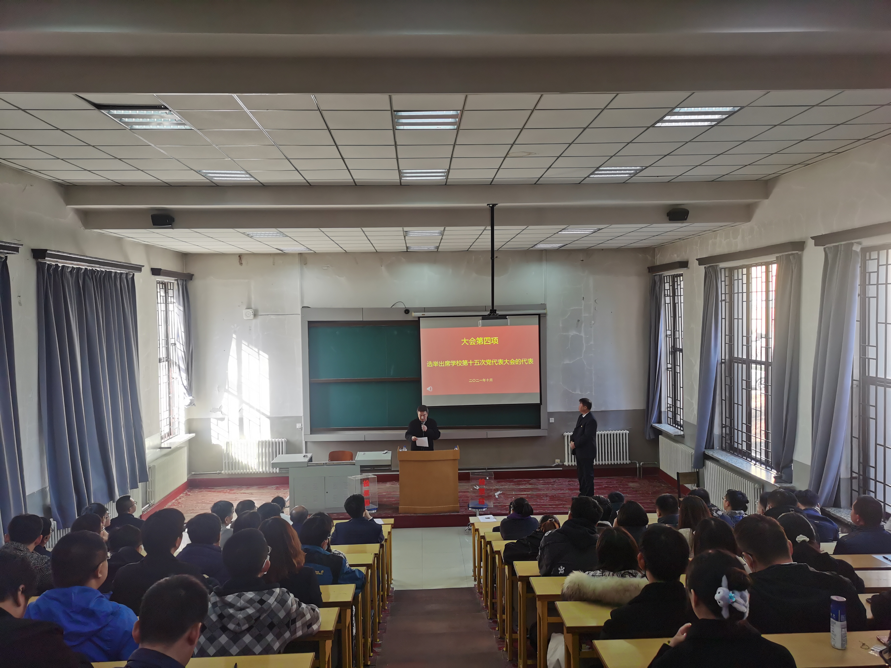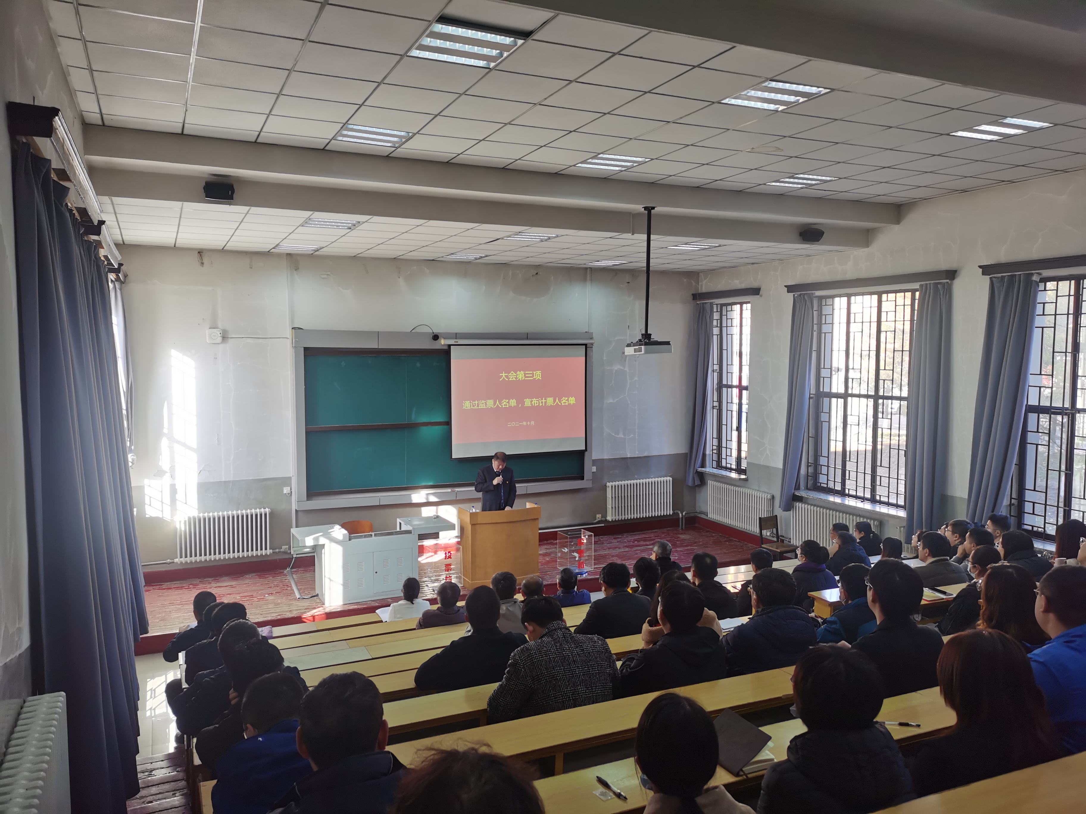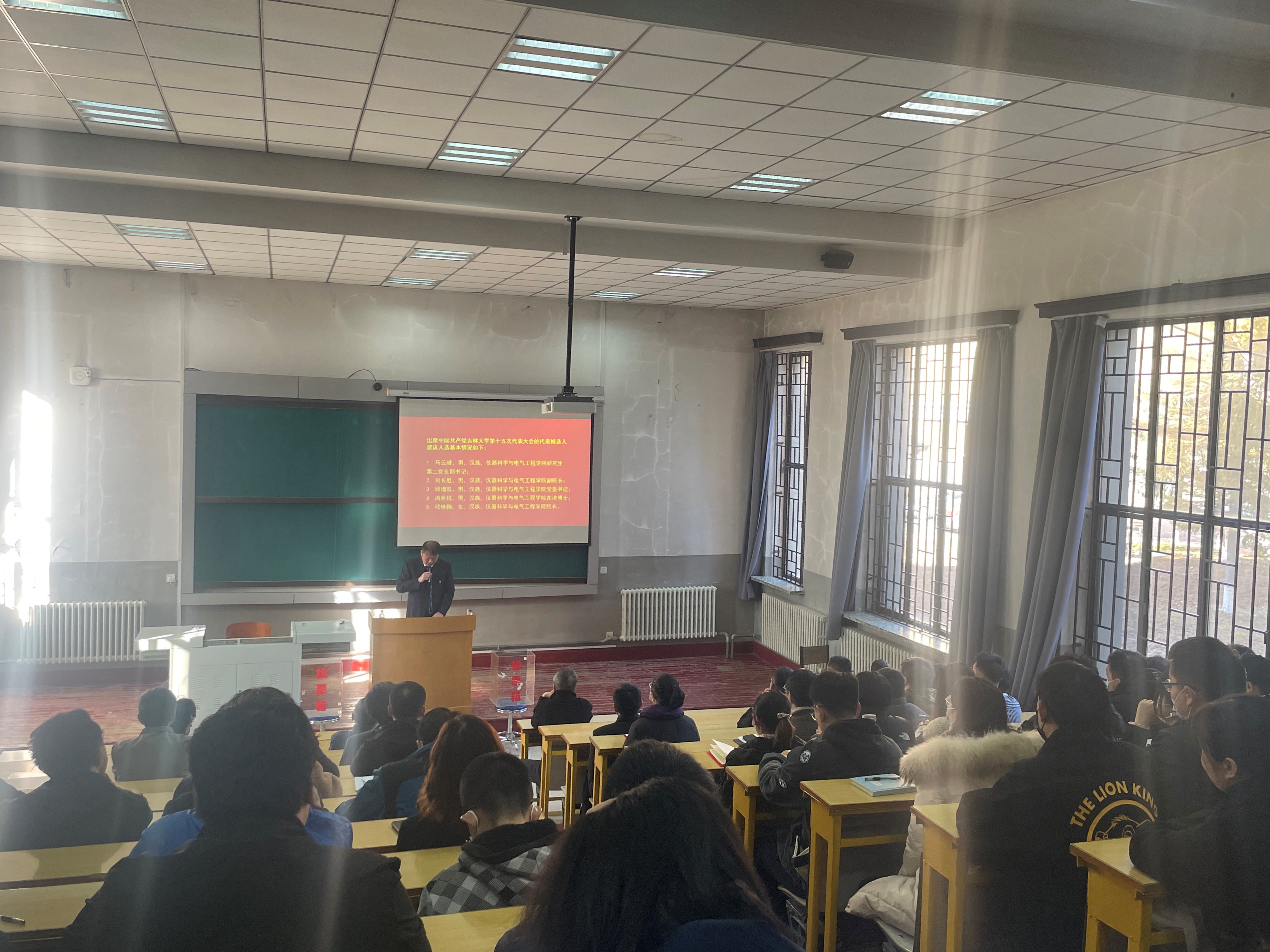 党委书记邱增凯同志宣读了代表候选人建议名单并逐一介绍了候选人情况,大会通过后,又宣读了监票人建议名单,并提请大会表决通过,接着,会议指定了计票人;随后,全体党员在工作人员的组织下认真填写选票并完成投票。本次党员大会本着公开透明的宗旨,充分发扬党内民主,进一步彰显了党员的知情权、参与权、选择权和监督权。最后,邱增凯同志现场公布了投票结果,并对新当选的中国共产党吉林大学第十五次代表大会代表表示祝贺。