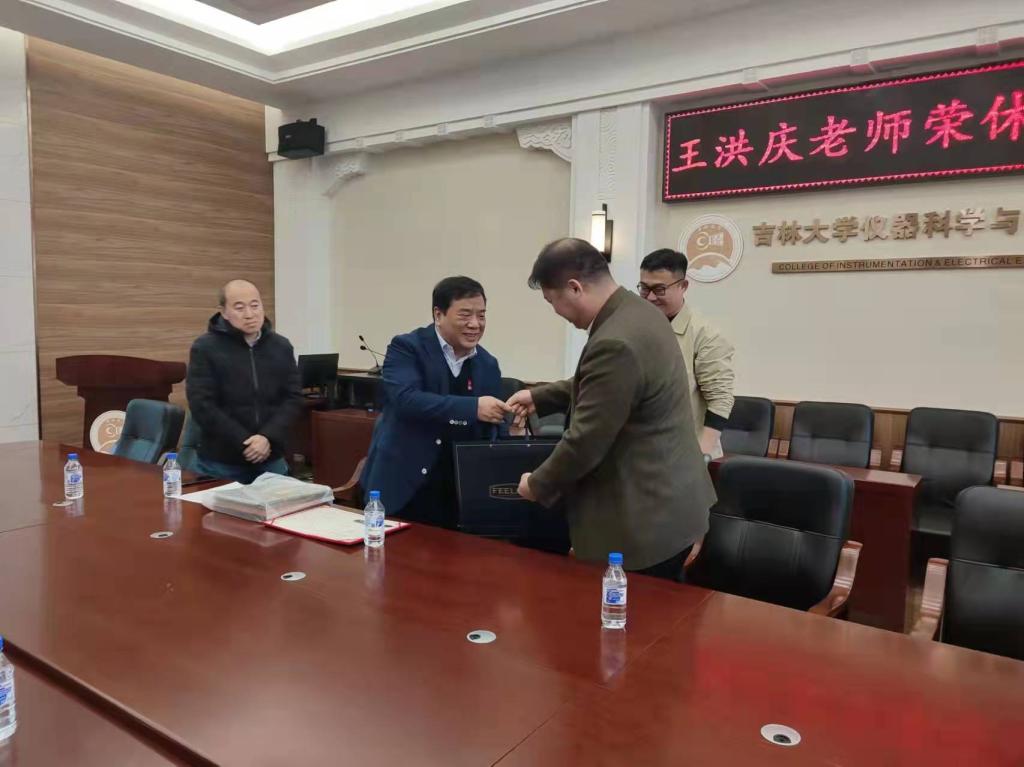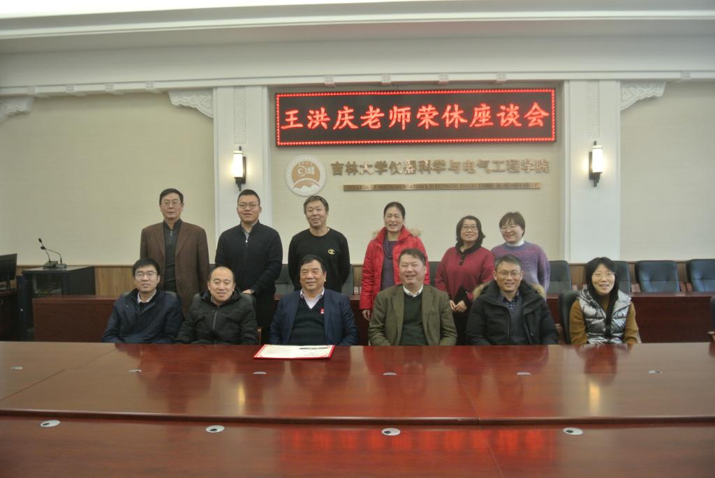 向王洪庆老师颁发荣休证书并合影留念,座谈会在温馨和谐的氛围和热烈的掌声中结束。