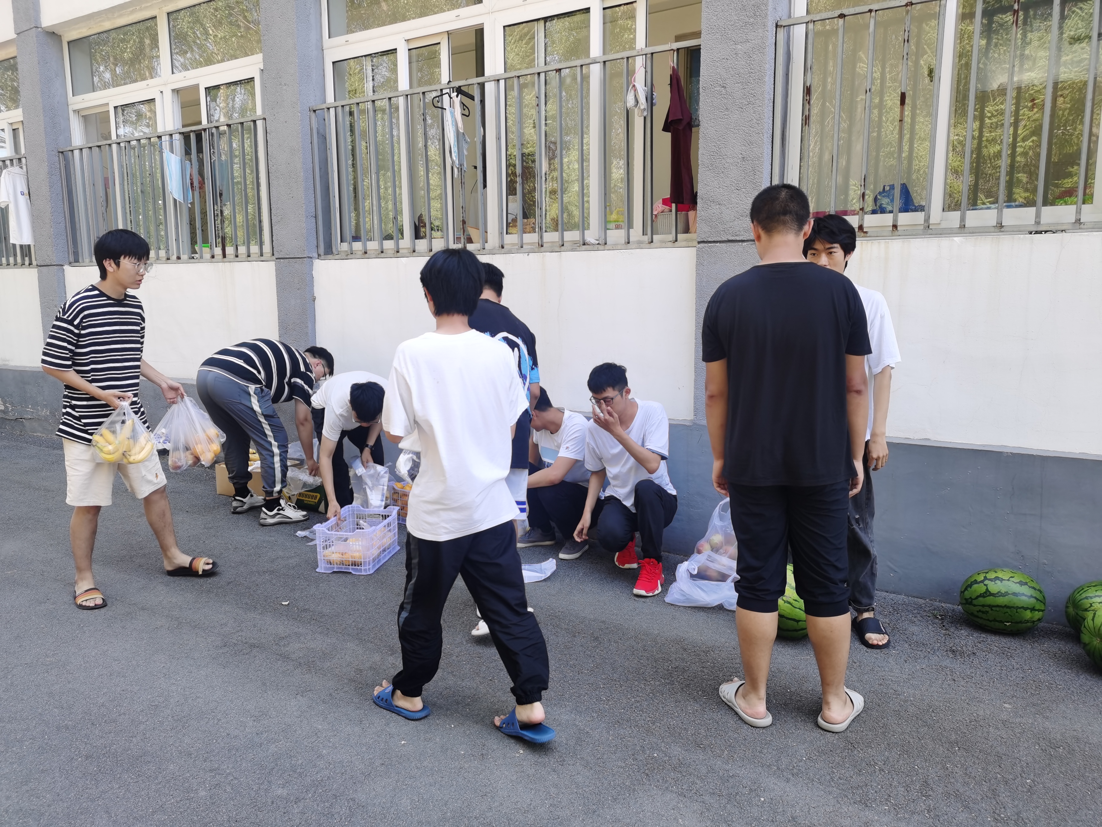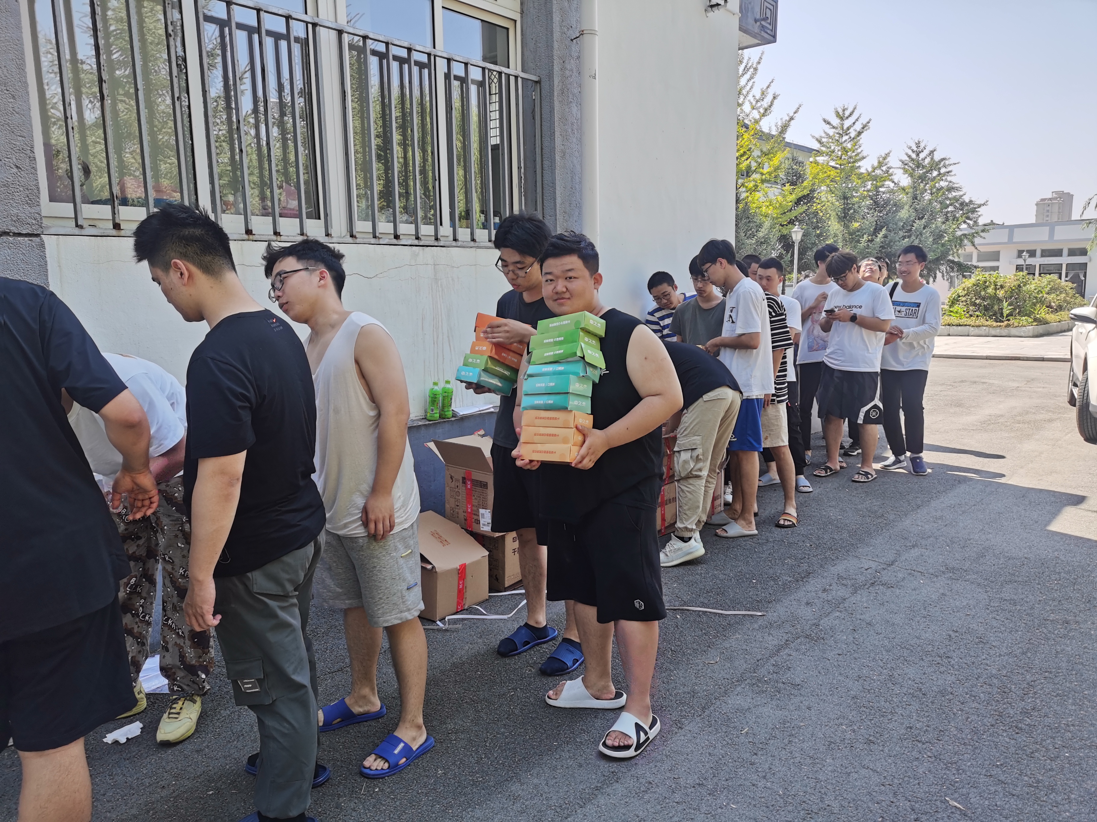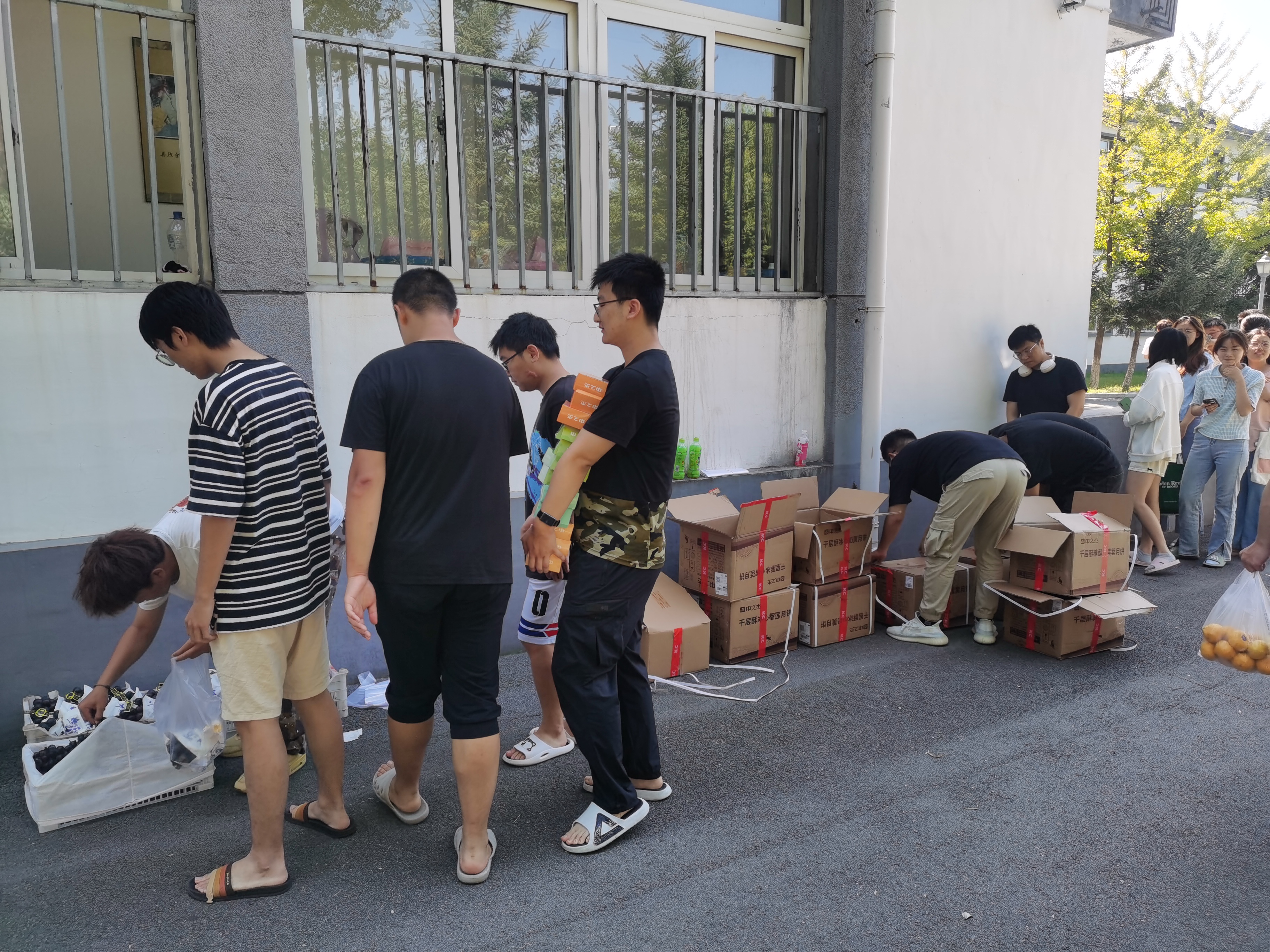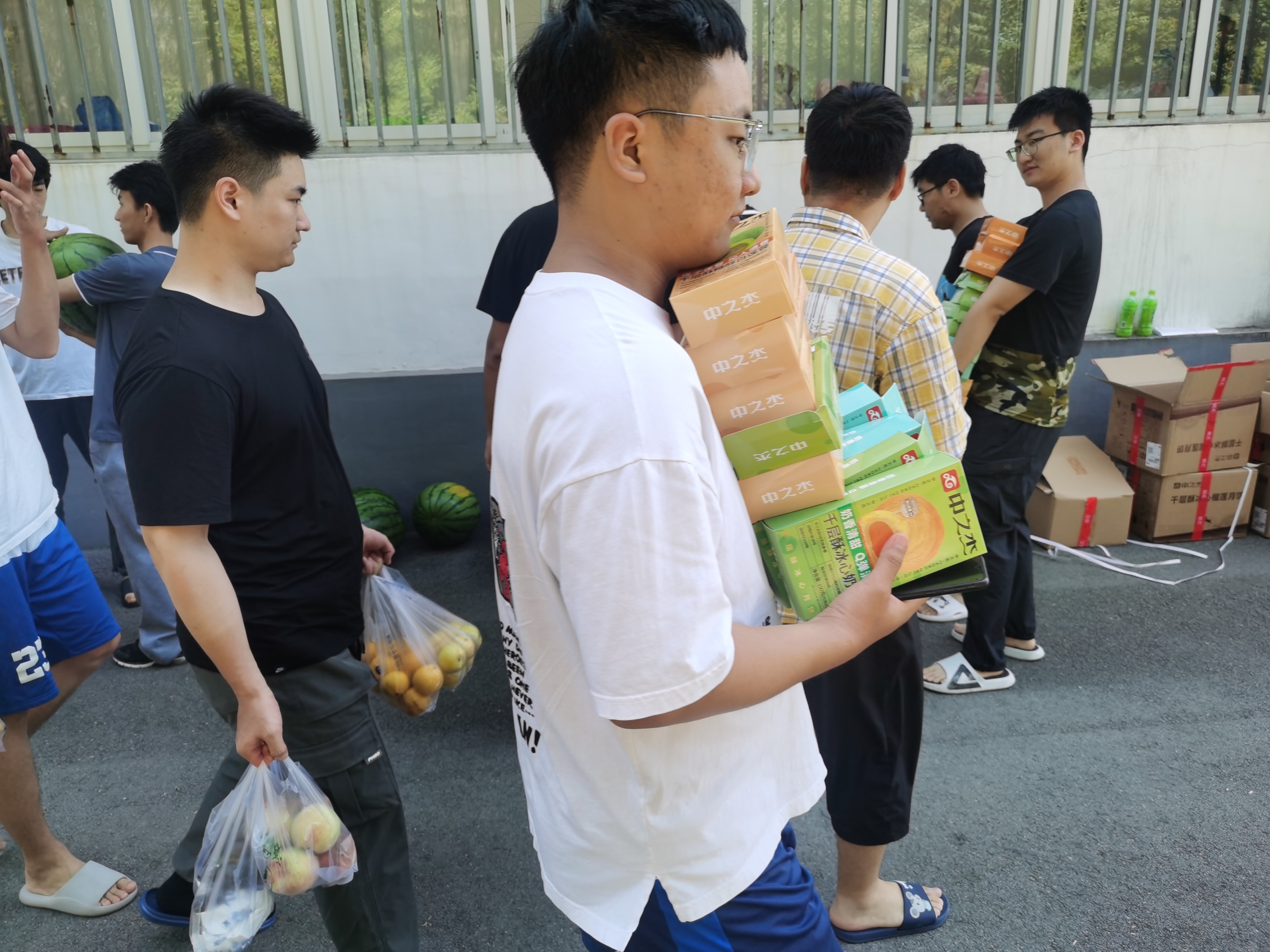 的老师组织同学们领取月饼和水果,向同学们询问实习感受和生活情况,学生脸上洋溢着笑容,感受到来自香港六合彩开奖号码