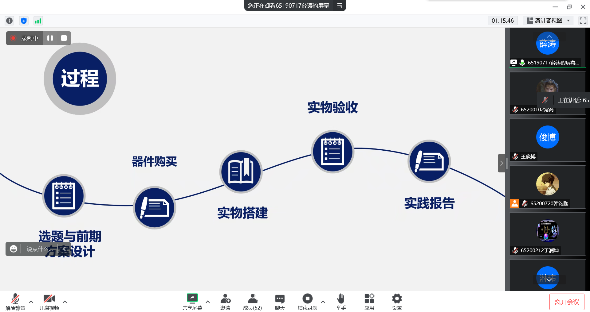 大三同学多个实践同时临近,但大部分同学对于实践要做什么以及一些与实验时不同的实践内容还没有一个特别清楚的认知框架。与此同时,临近期末,2020级同学的实验、实践以及复习任务比较繁重,也比较渴望有学长学姐进行各个实践经验的分享,以便在实践中提高效率。吉林大学大学生科技创新协会(以下简称科协)充分了解20级同学们的诉求,决定于2022年11月18日20:30—22:00,通过腾讯会议的方式举办了“仪创课堂——测控&电气专业实践专题分享”活动,并邀请吉林大学大学生科技创新协会19级成员为20级同学分享各个实践期间的经验,帮助20级同学更快上手实践,提高实践效率。