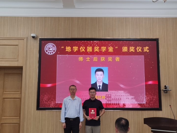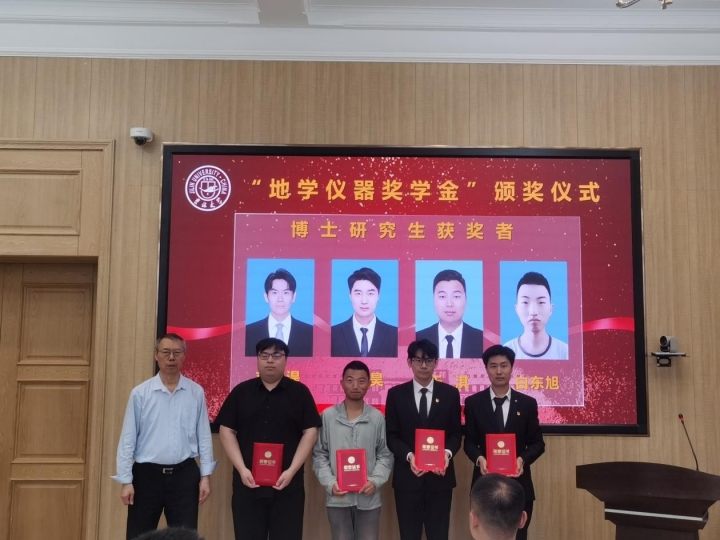 党委书记邱增凯宣读了《关于表彰吉林大学2024年度“地学仪器奖学金”获奖学生的决定》。林君院士为获奖学生代表颁发荣誉证书。获奖学生代表、吉林大学2025年度十佳博士研究生刘怀湜发言。