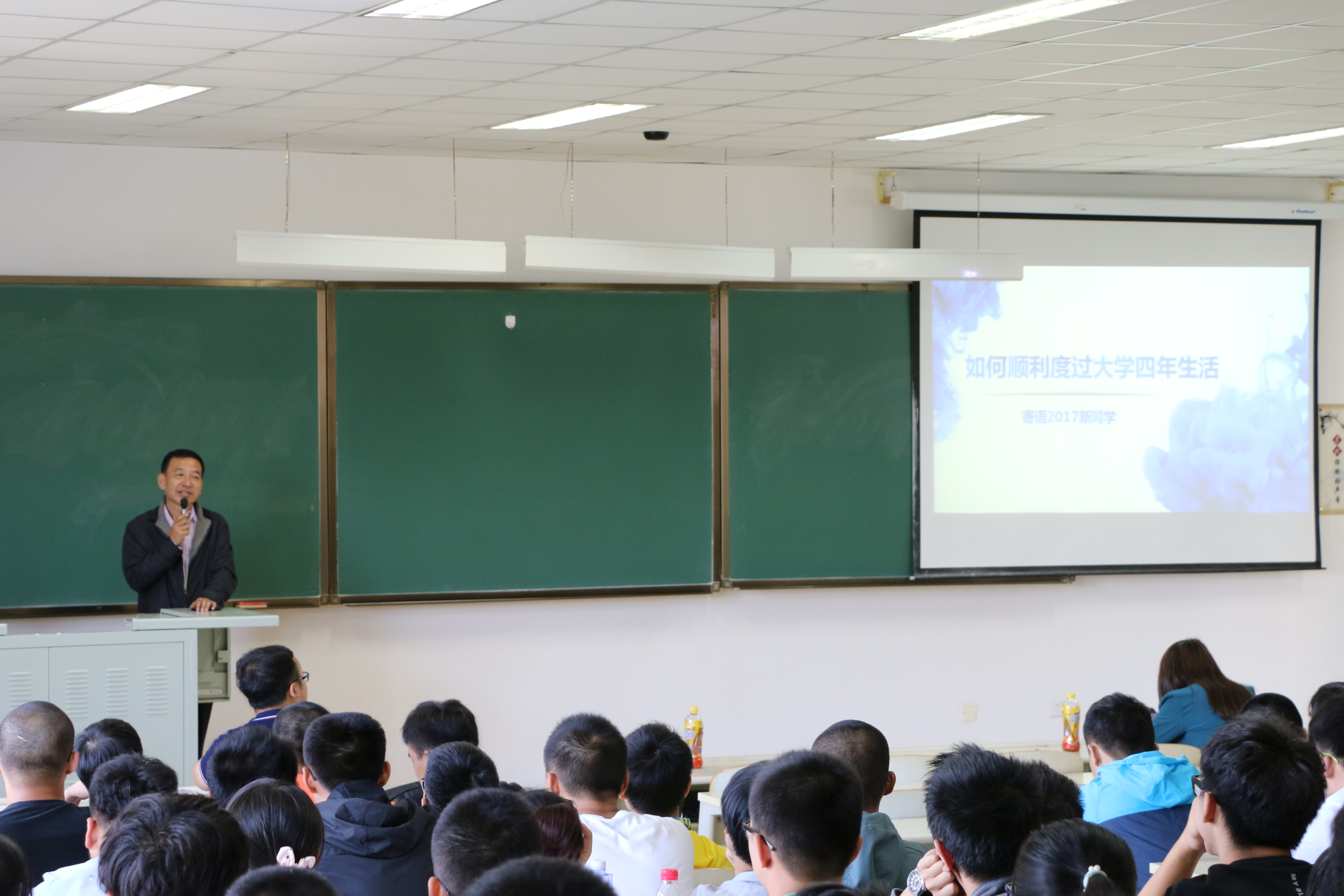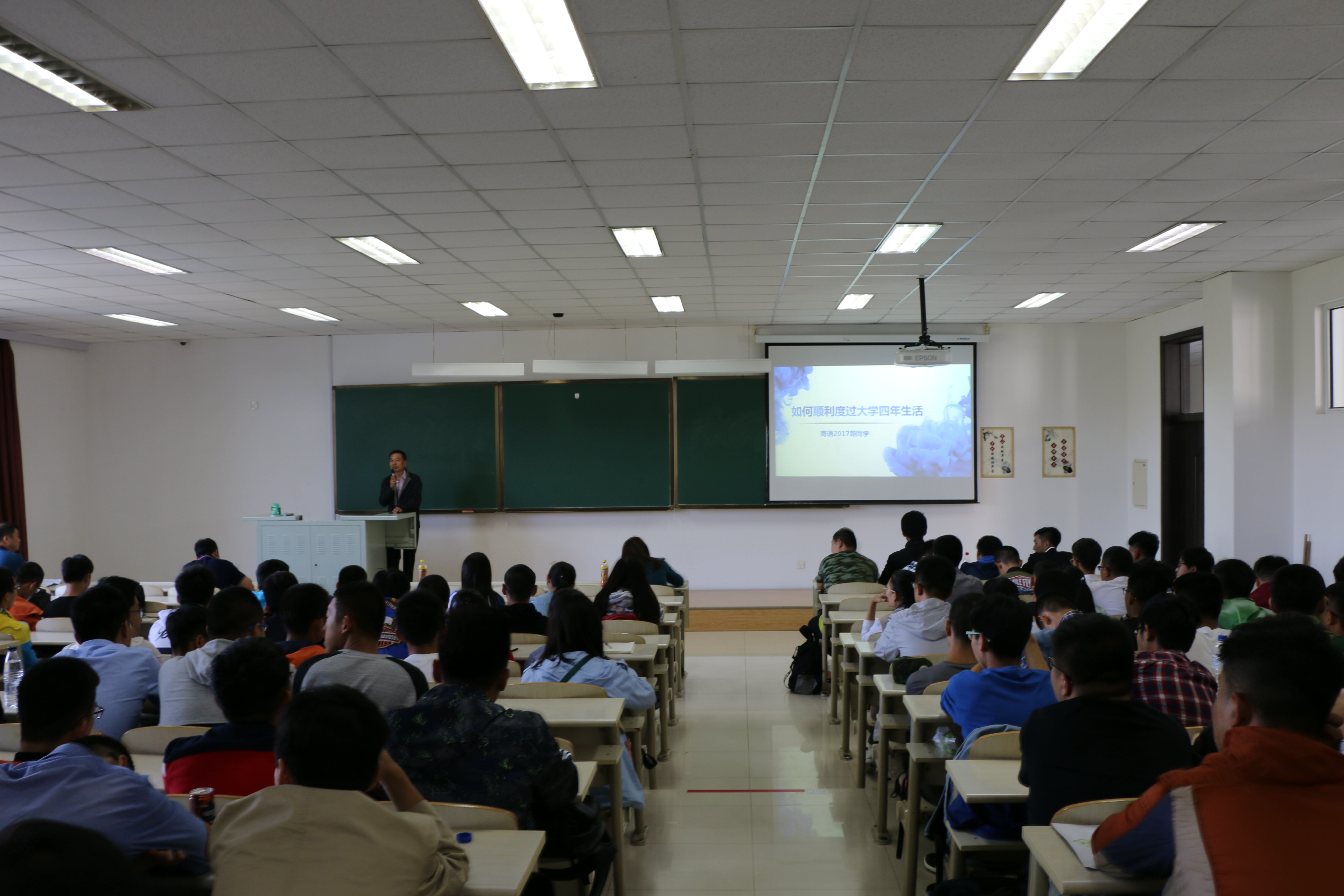 党委书记王爱民以“如何顺利度过大学四年生活”为主题为2017级新生进行了一场生动的讲座,讲座于香港六合彩开奖号码前卫南区李四光楼104室举行。