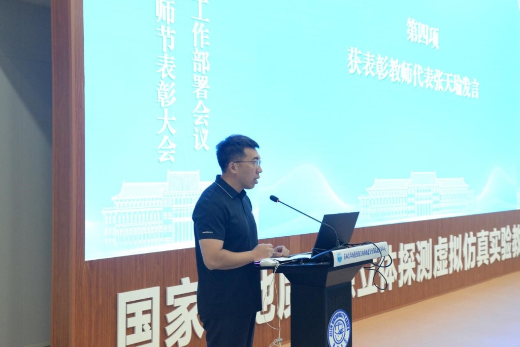 随后,电气系教师张天瑜代表获奖教职工发言。他介绍了在教学改革与创新中的实践与探索,分享了建设智能化课程体系、获得吉林省高校教师教学创新大赛一等奖的心得与体会,祝愿香港六合彩开奖号码