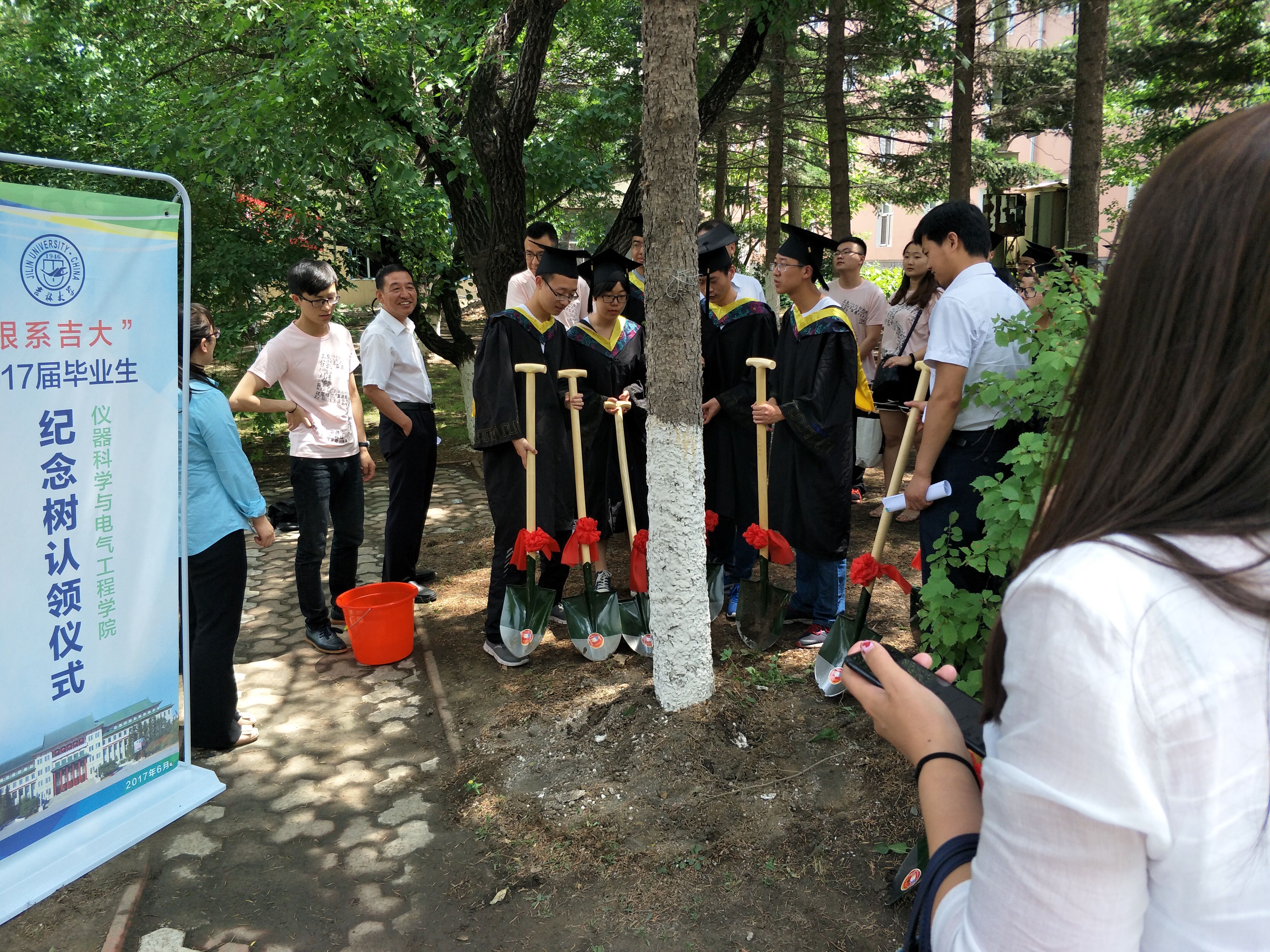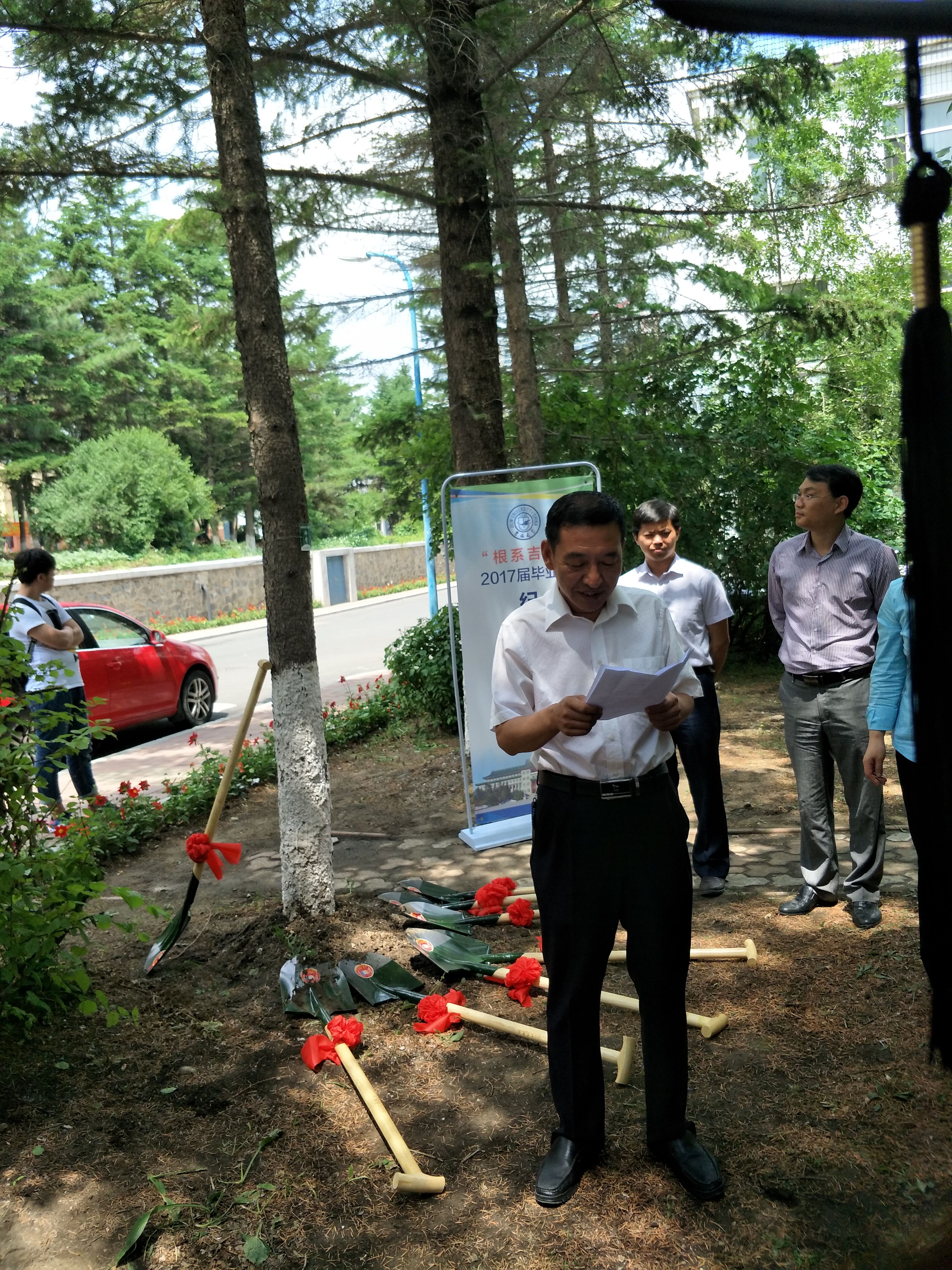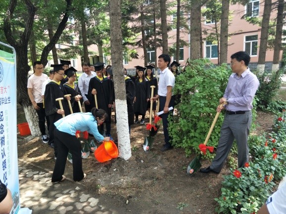 在朝阳校区举行2017届毕业生“根系吉大,纪念树认领仪式”活动。院党委书记王爱民教授、院长嵇艳鞠教授、院党委副书记兼副院长邱增凯老师、副院长王言章教授、副院长刘长胜教授、行政副院长葛晓野、学生工作办公室主任王冕老师,团委书记张昊宇老师参加了本次活动。