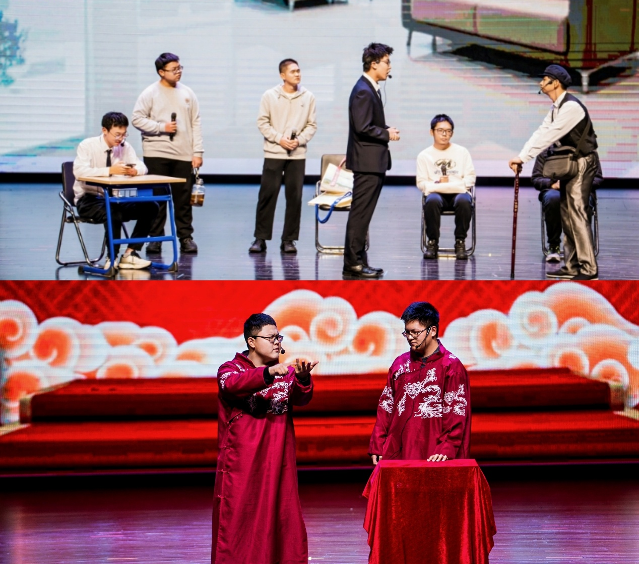 舞蹈节目展现了学子们的多样才华与青春活力。舞蹈《The Chase》的表演者们自信大方,舞姿舒展;创意舞《闪耀男孩》则以憨态可掬、活泼自然的表演赢得了满堂彩。魔术《偶然》环节,纸牌盲猜、绳结变幻、计算器时间预言等接连上演,奇迹般的效果令观众惊叹不已,掌声不断。中西乐器串烧更是别具匠心,小提琴的悠扬与二胡的婉转交织共鸣,最终汇聚于《赤伶》的旋律,奏响了独特的东方古韵,体现了文化的交融与创新。