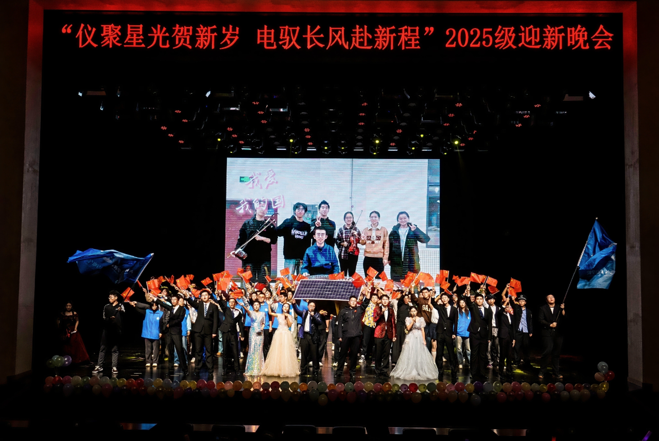 晚会中,深情与担当同样动人。2025级新生班长们的集体朗诵《向仪电报告》,以铿锵之声锚定专业初心,将“仪电人”的使命担当与青春誓言紧密融合,引发了全场的强烈共鸣。