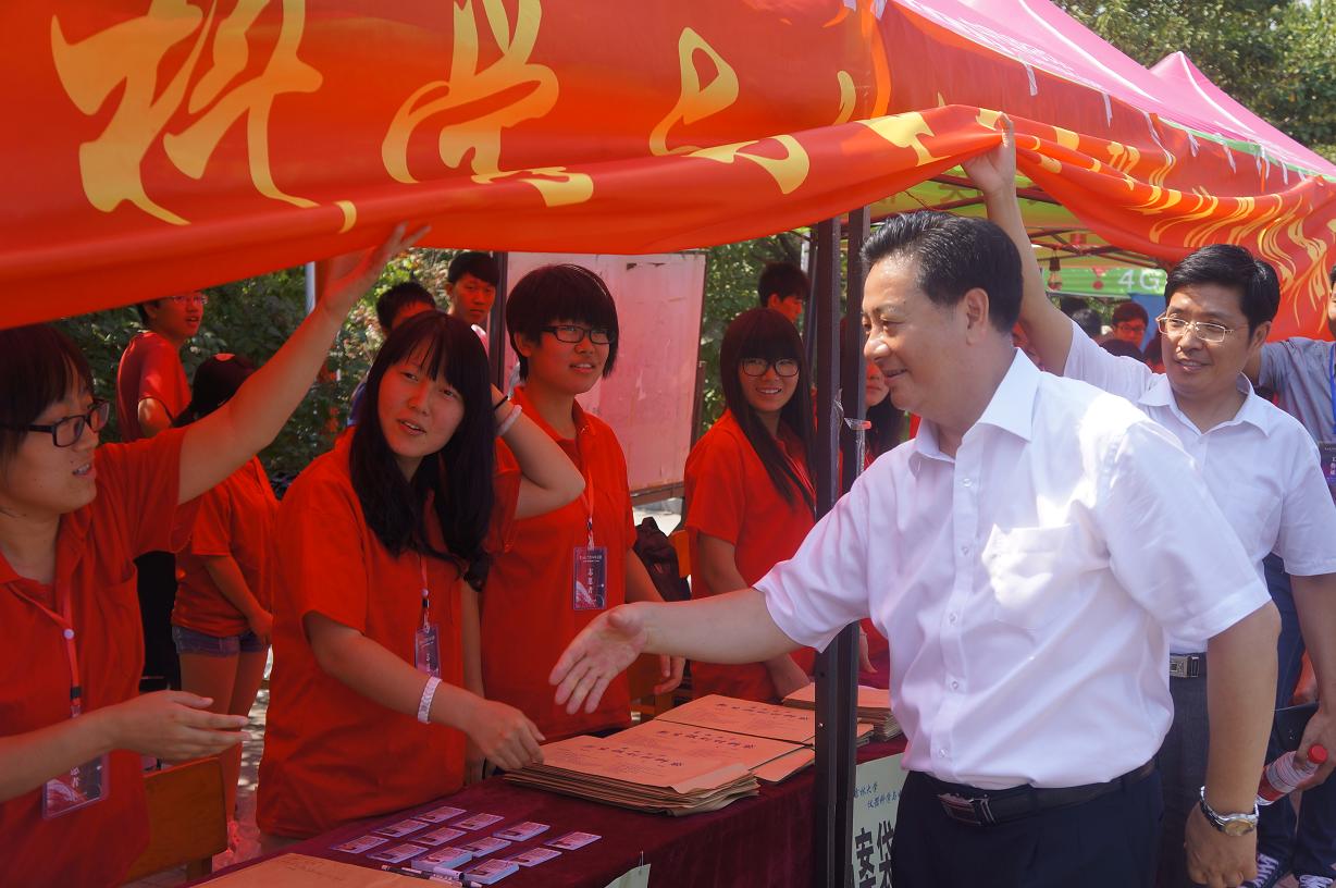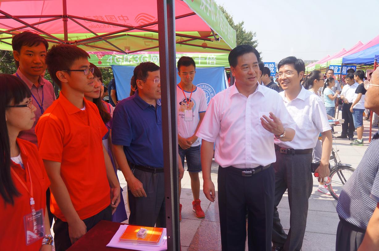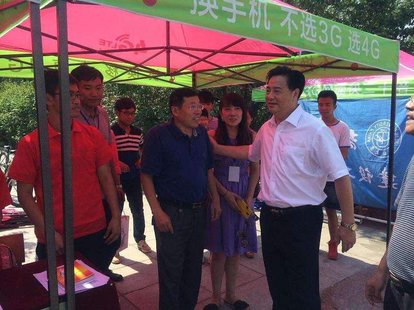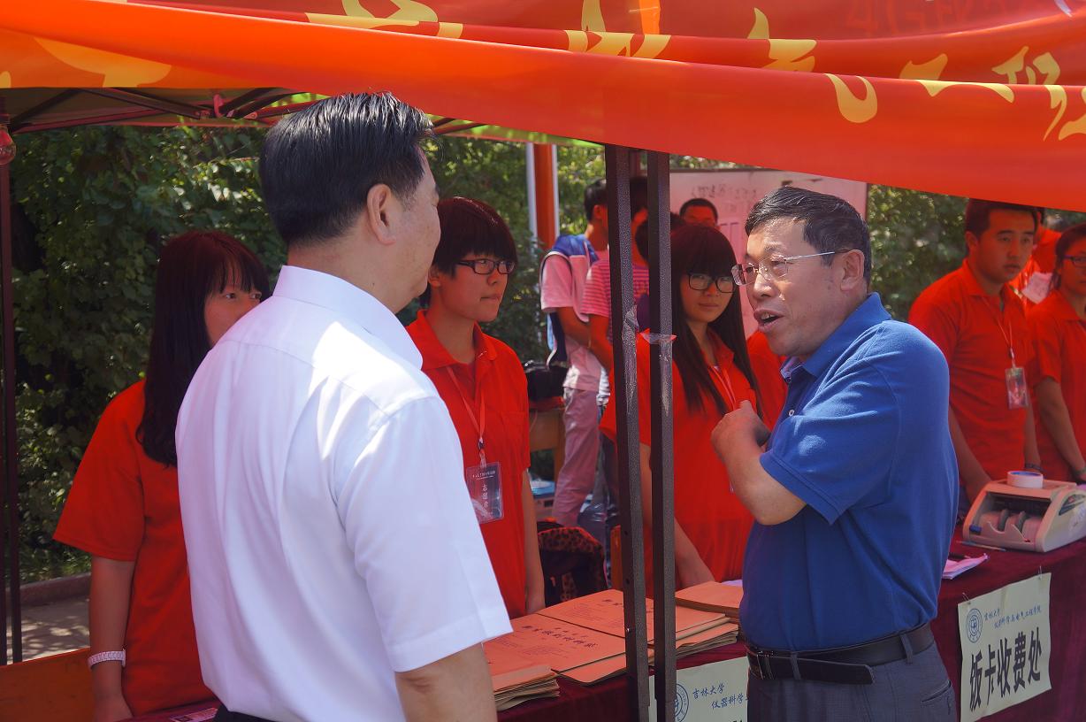 相关职能部门负责领导陪同下来到中心校区五月花广场视察2014年迎新工作情况。