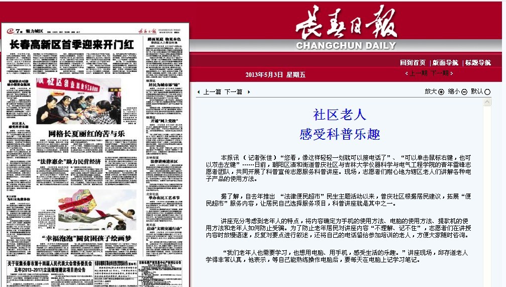 1. 长春日报《社区老人感受科普乐趣》