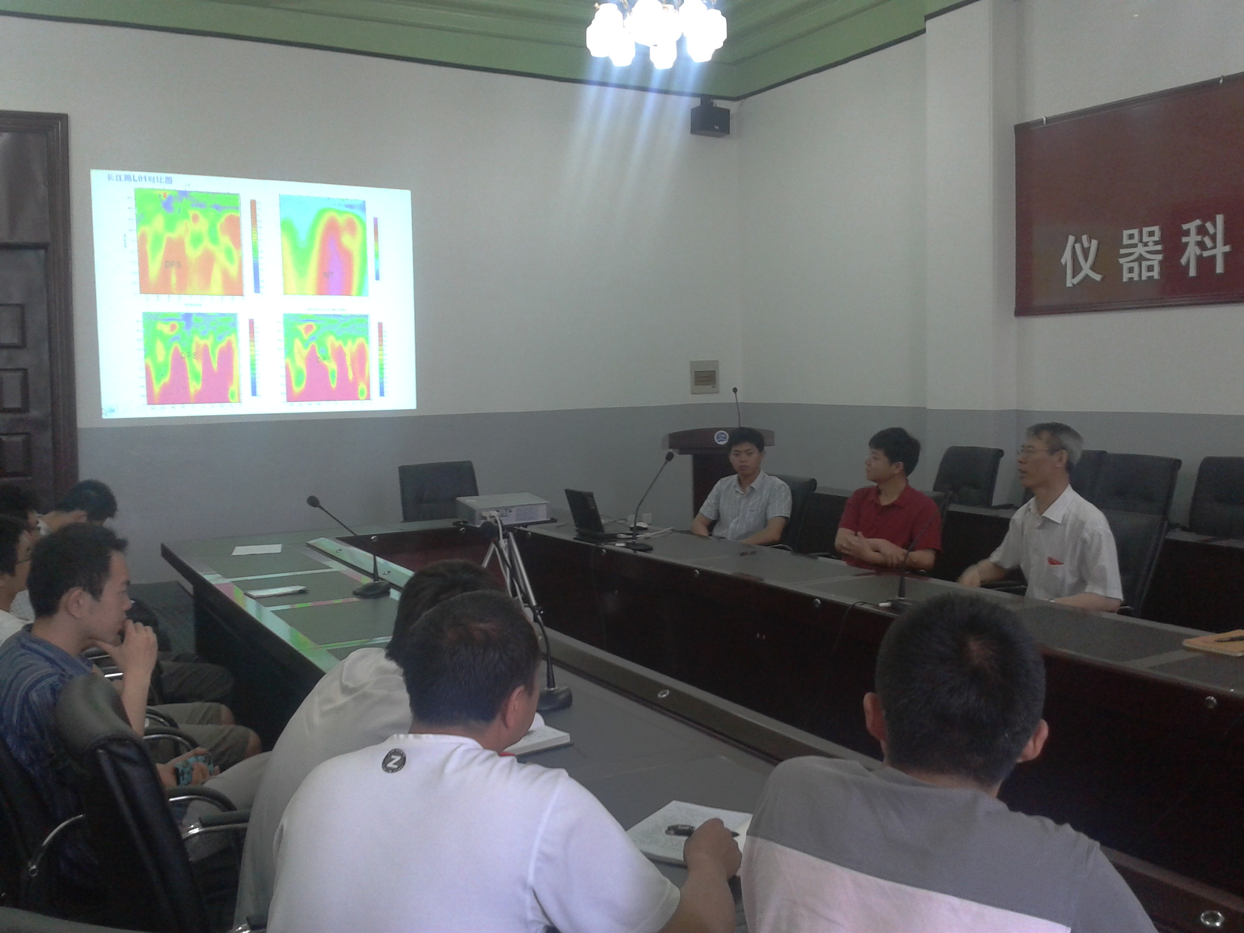 学术会议室开展关于大深度电磁探测技术及仪器课题组专项讨论。讨论会由周逢道教授主持,讨论会上,刘长胜副教授代表大深度电磁探测技术及仪器课题组,汇报了近期的主要进展及目前存在的问题,实验室与会人员就如何提升实验室成果、解决目前存在的问题以及实验室建设等多方面进行了热烈讨论,林君院长参与讨论并做最后总结,他对于实验室取得的成果表示肯定,同时也对如何提升实验室目前取得的成果提出建设性意见和建议,对课题组目前存在的问题提出了解决的方案和方向,讨论会在热烈而融洽的气氛中结束。