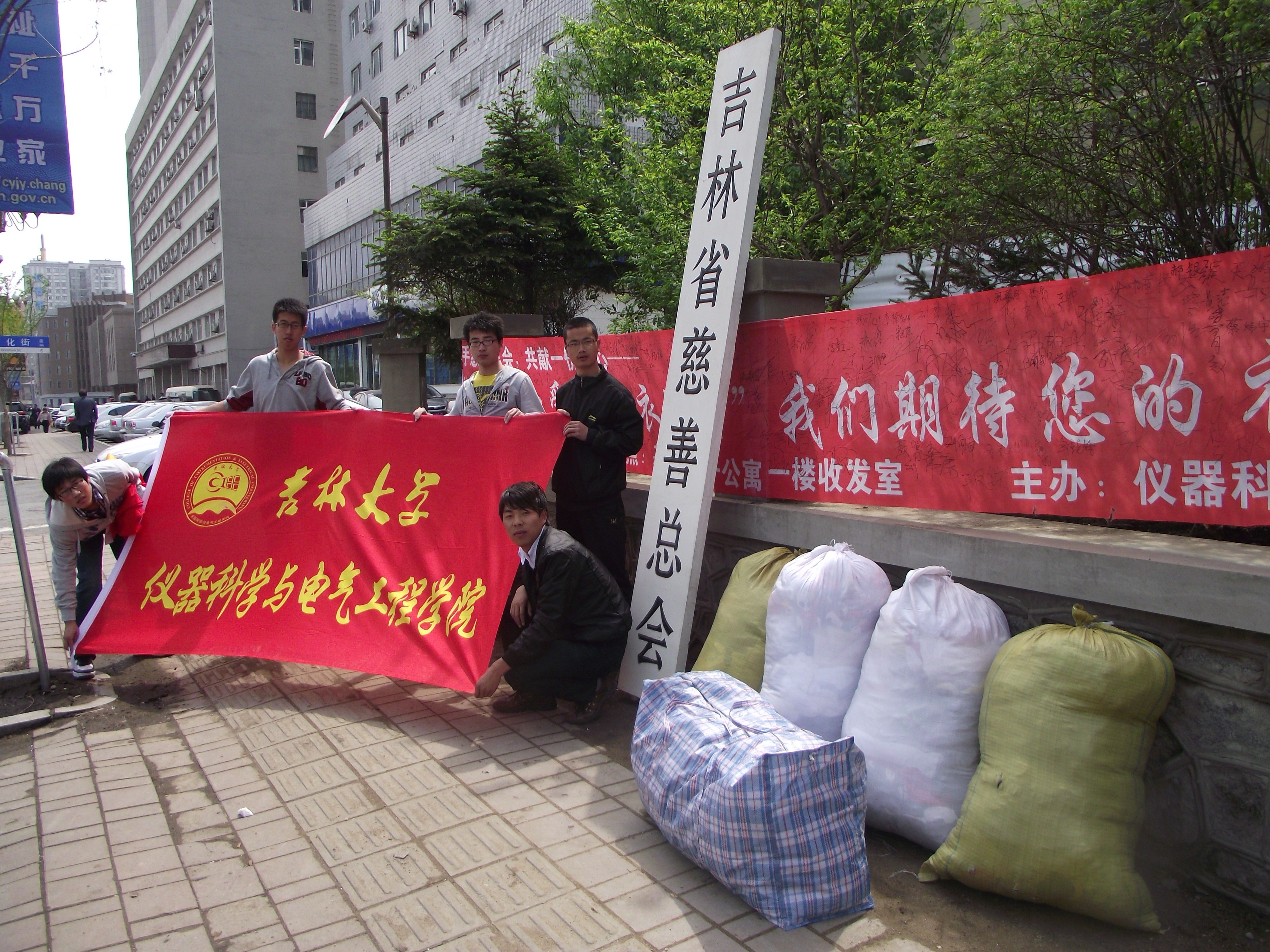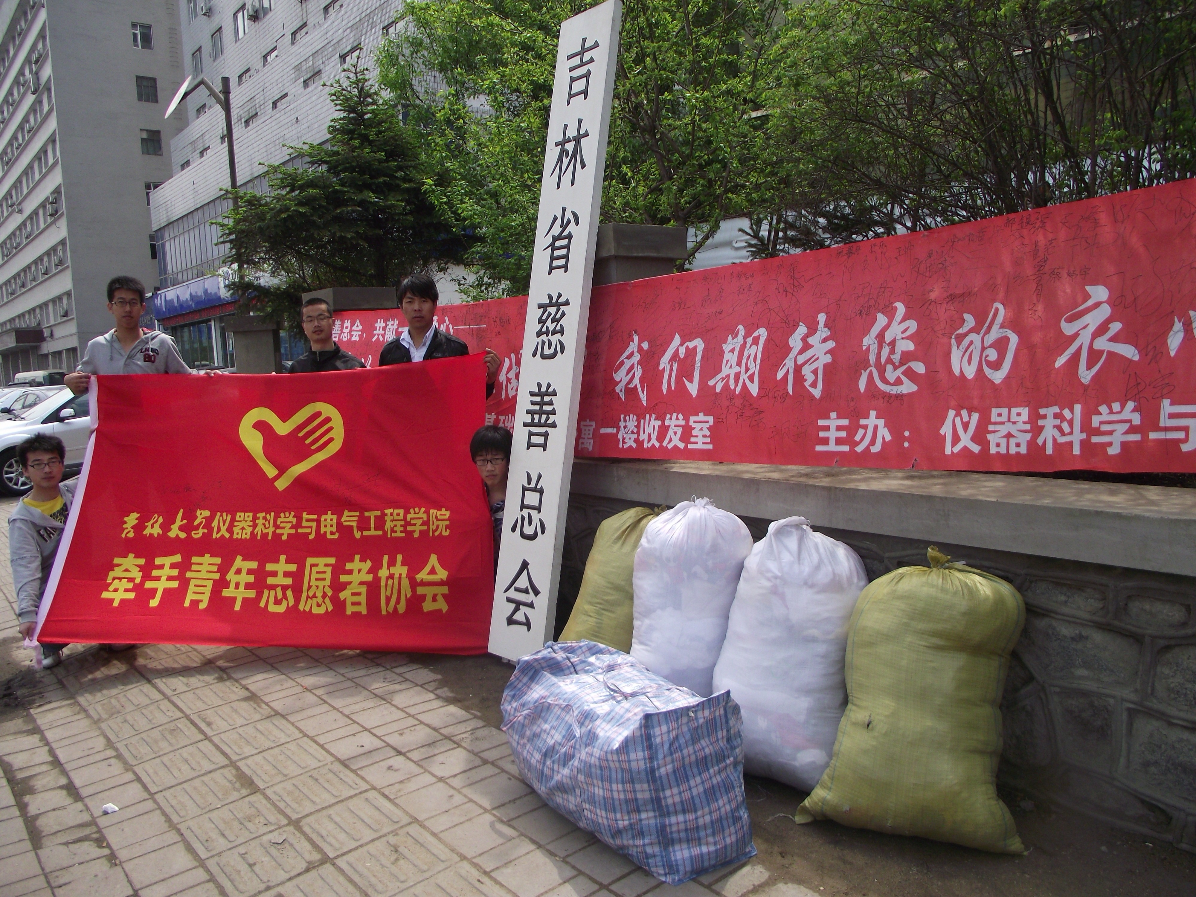 为纪念中国共青团成立90周年,进一步弘扬“奉献、友爱、互助、进步”的志愿服务精神,吉林大学仪器科学与电气工程学院团委、“牵手”青年志愿者协会携手吉林省慈善总会于2012年5月4日至5月11日在中心校区开展了“细微的爱,从衣做起”——爱心衣物捐赠活动。经过一周的爱心捐赠,活动最终募捐得衣物10大包,共计600余件。2012年5月14日上午,此次爱心捐赠活动的组织者们将爱心衣物全部送往吉林省慈善总会,受到慈善总会工作人员的热情接待和高度赞赏。