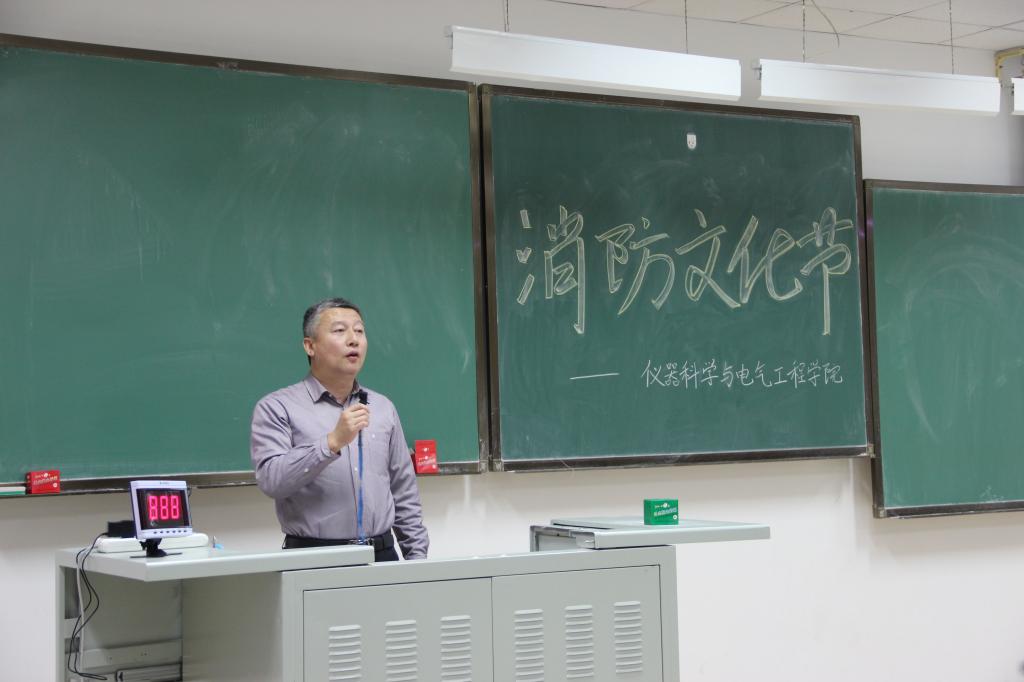 学生会生管部联合院团委组织培训部于2017年11月23日晚6:00在吉林大学中心校区李四光楼302教室举办了消防文化节活动。院党委书记王爱民老师,副院长葛晓野老师,院办公室主任边江老师,2017级2班班导师刘玉娟老师,4班班导师于永老师、刘名扬老师,7班班导师、电气系主任李刚老师及学生工作办公室主任王冕老师,团委书记兼2017级辅导员张昊宇老师共同出席了本次活动,活动由2017级苏界儒同学主持,2017级全体同学共同参与。