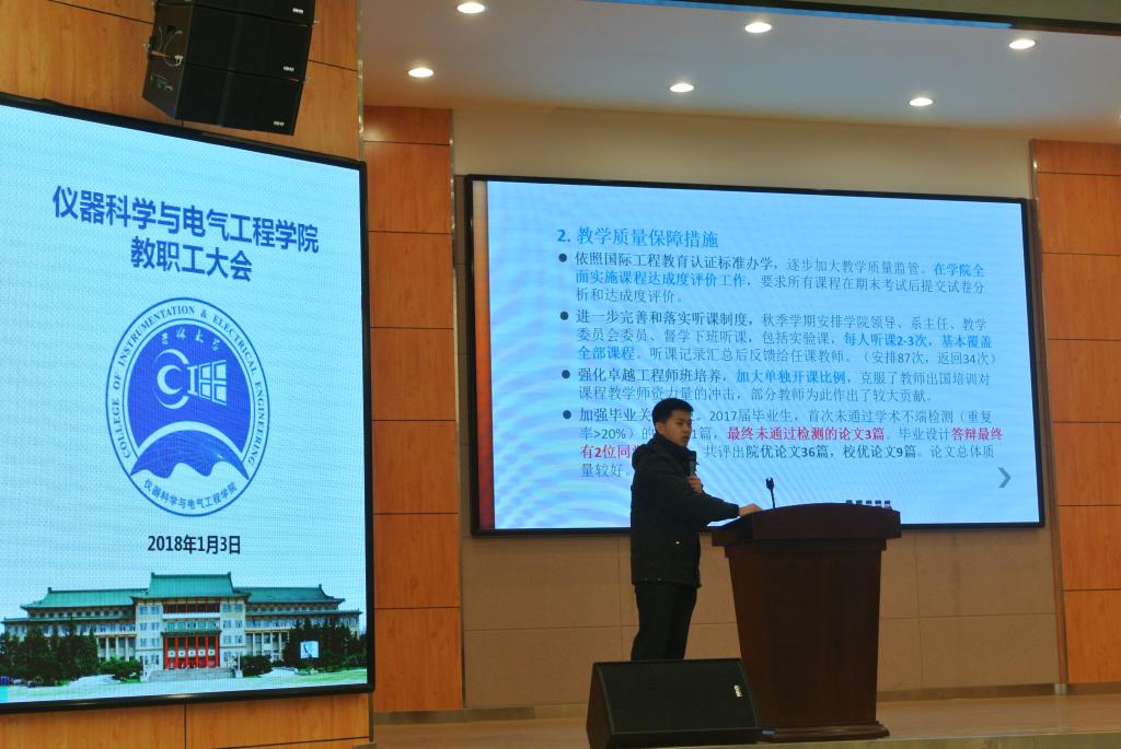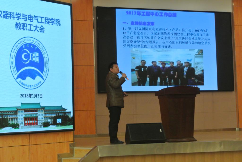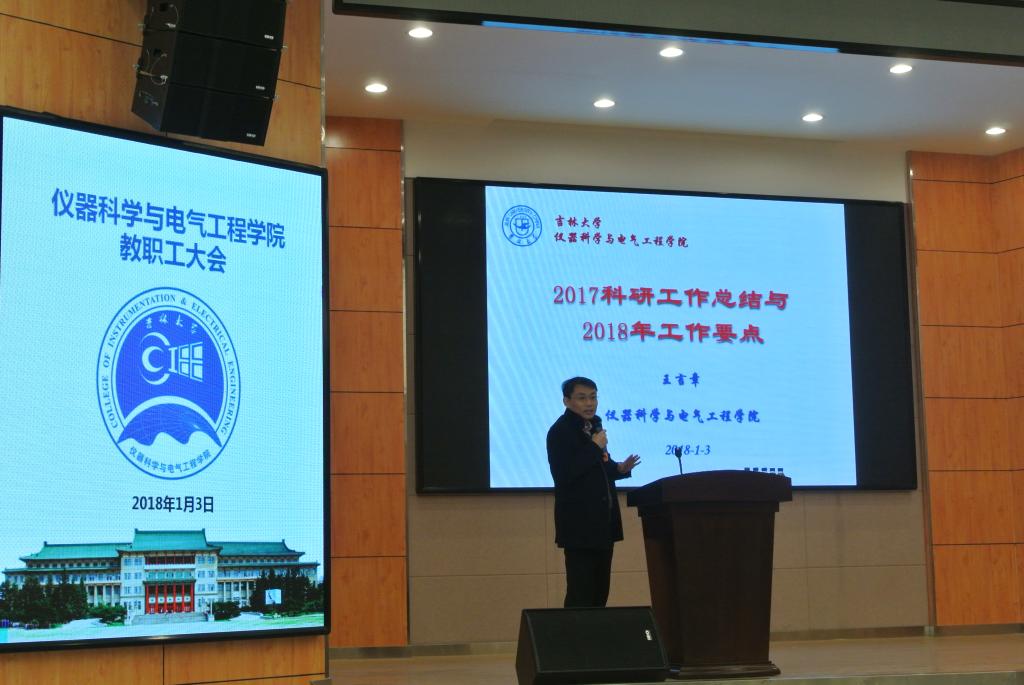 副院长王言章、刘长胜、葛晓野、重点实验室行政副主任孙忠分别就科研、行政、本科教学、工程中心及重点实验室等工作向全院教工进行了详细汇报,分别展示了各自分管工作2017年所取得的成效,并对2018年工作重点进行了布置。
