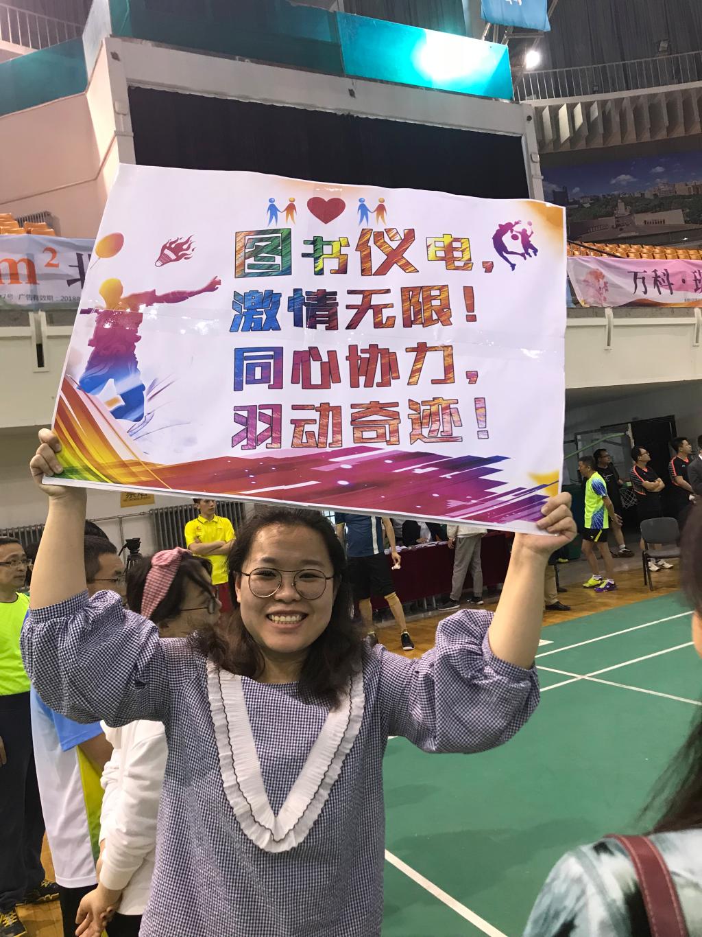 与图书馆女子羽毛球队。
