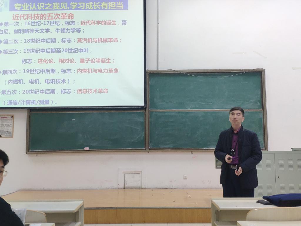 会上,程德福教授鼓励学生打牢基础理论知识,呼吁采取创新培养方式进行教书育人。他分别从历史发展、专业内涵、价值作用、面向未来等多维度剖析专业,并以课程学问、目标驱动、守住底线、防碎片化作为学业成长之建言,为仪电学生指明成长的方向,并留下“专业知识之我见,学习成长有担当”的寄语,引起现场同学们共鸣,现场掌声不断。程德福教授在讲座中分析了中国两千年来的科技发展史,强调中国向强国迈进的进程中高新技术的重要性,呼吁仪电学生未来冲击专业前沿领域,攻克高技术难题,切不可追求安逸。程福德教授针对当今时代的发展趋势对同学们表达了真切的希望:“不要做社会的适应者,而是要做社会的引领者”,要求当代大学生应有阳刚之气和担当意识,要将中华民族复兴作为己任,为民族复兴铺路架桥,为祖国建设添砖加瓦。