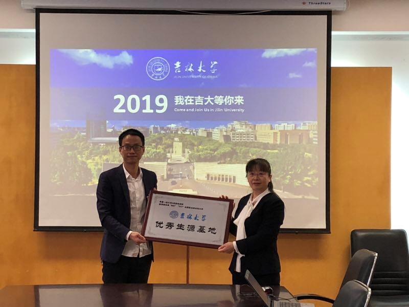 大类培养与交流、校内转专业、人才成长等工作,随后,双方就招生宣传的节点、招生宣讲会、专家到中学做专题报告等进行了交流。最后,嵇艳鞠院长向陈国平副校长授予了“吉林大学优秀生源基地”牌匾。