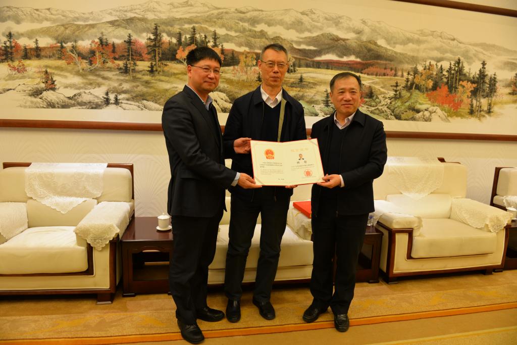 党委书记杨振斌、校长张希看望了林君教授,并祝贺他当选为中国工程院院士。