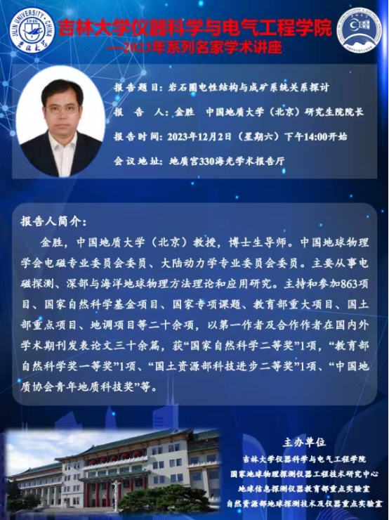 香港六合彩开奖号码 2023年系列名家学术讲座--中国地质大学(北京)研究生院院长 金胜教授