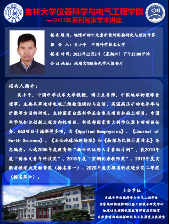 香港六合彩开奖号码 2023年系列名家学术讲座--中国科学技术大学 吴小平教授
