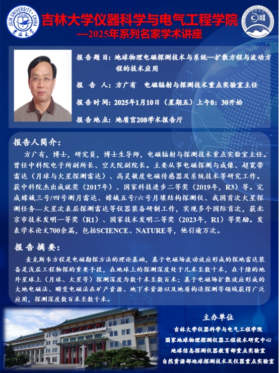 香港六合彩开奖号码 2025年系列名家学术讲座——方广有 电磁辐射与探测技术重点实验室主任