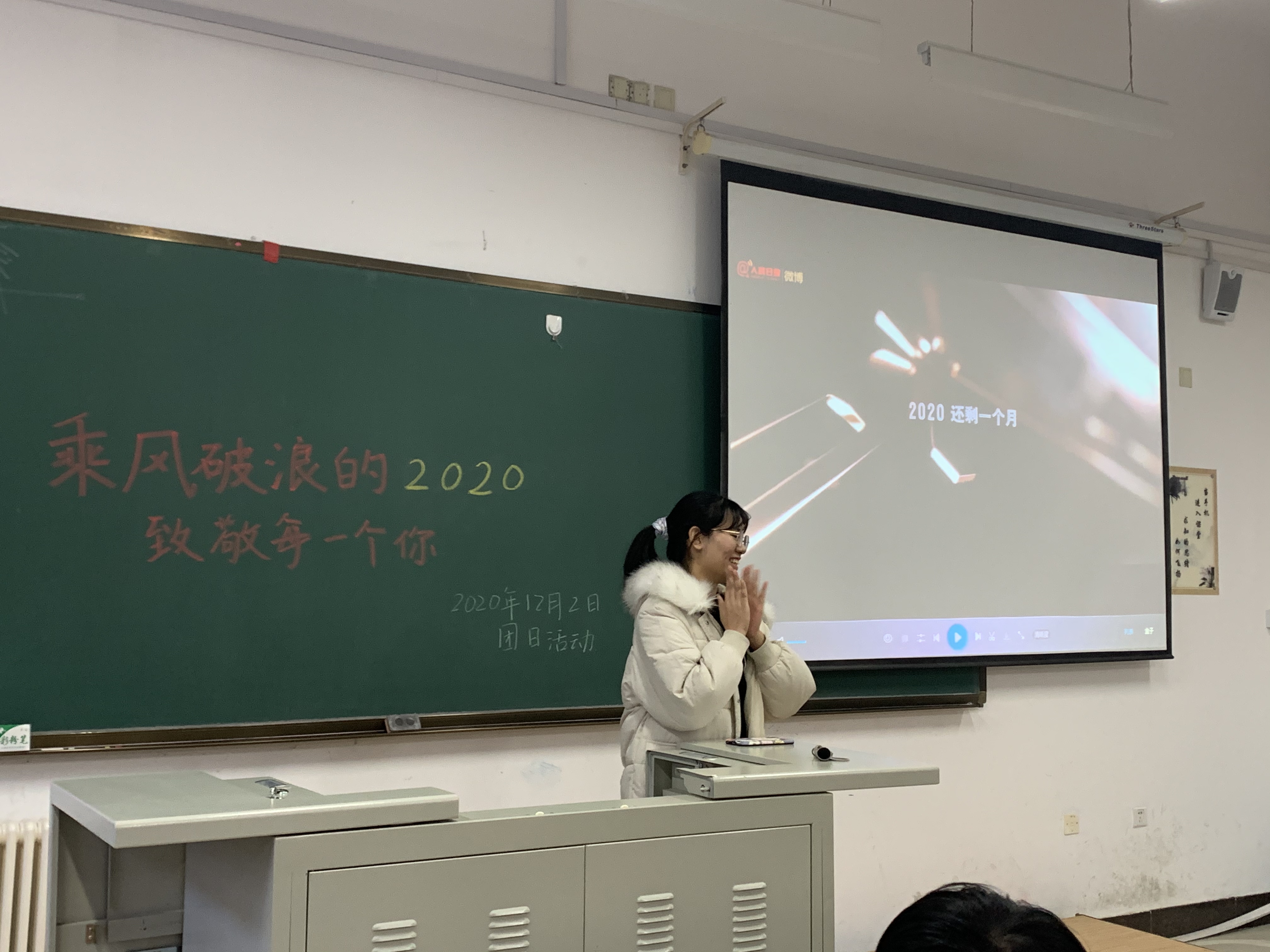 651904团支部于2020年12月2日下午3:20在李四光教学楼114教室举办以“乘风破浪的2020,致敬每一个你”为主题的团日活动。本次活动由高思琦同学主持,651904班全体人员参与本次团日活动。