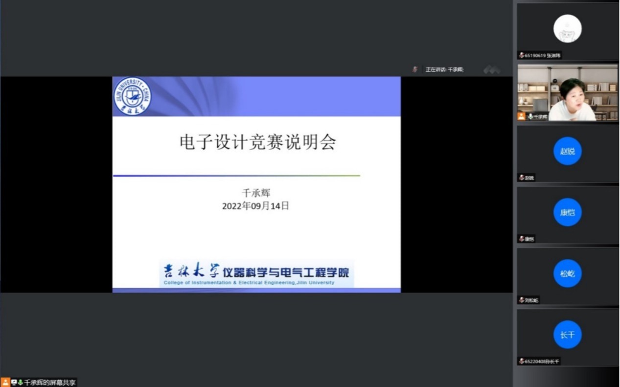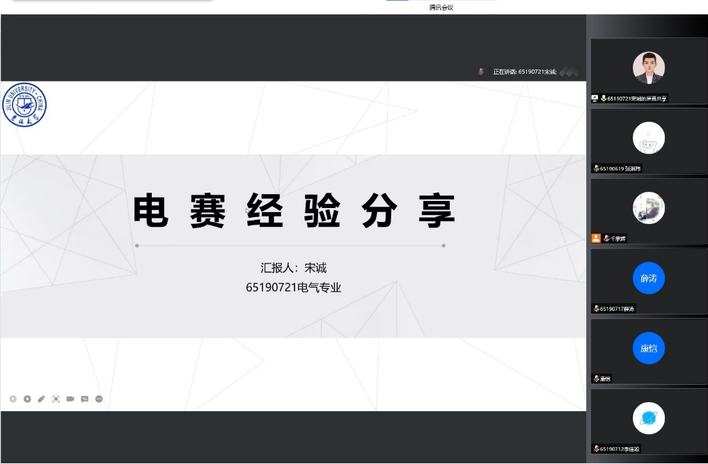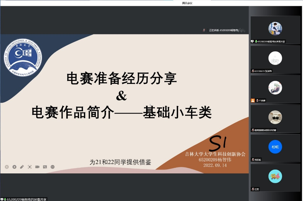 为帮助同学们从专业角度更好地了解电赛,积累经验,吉林大学大学生科技创新协会(以下简称“科协”),于2022年9月14日晚,通过腾讯会议直播的方式开办了“电子设计竞赛说明会”。会议由科协指导教师千承辉主持,邀请的嘉宾有参加电赛并取得成绩的程麟涵、汪勇、黄安冉、杨智伟、薛涛、李佳凇和宋诚七位同学。共计161人参会,千老师和各位嘉宾为同学们从不同角度详细地介绍了电赛。