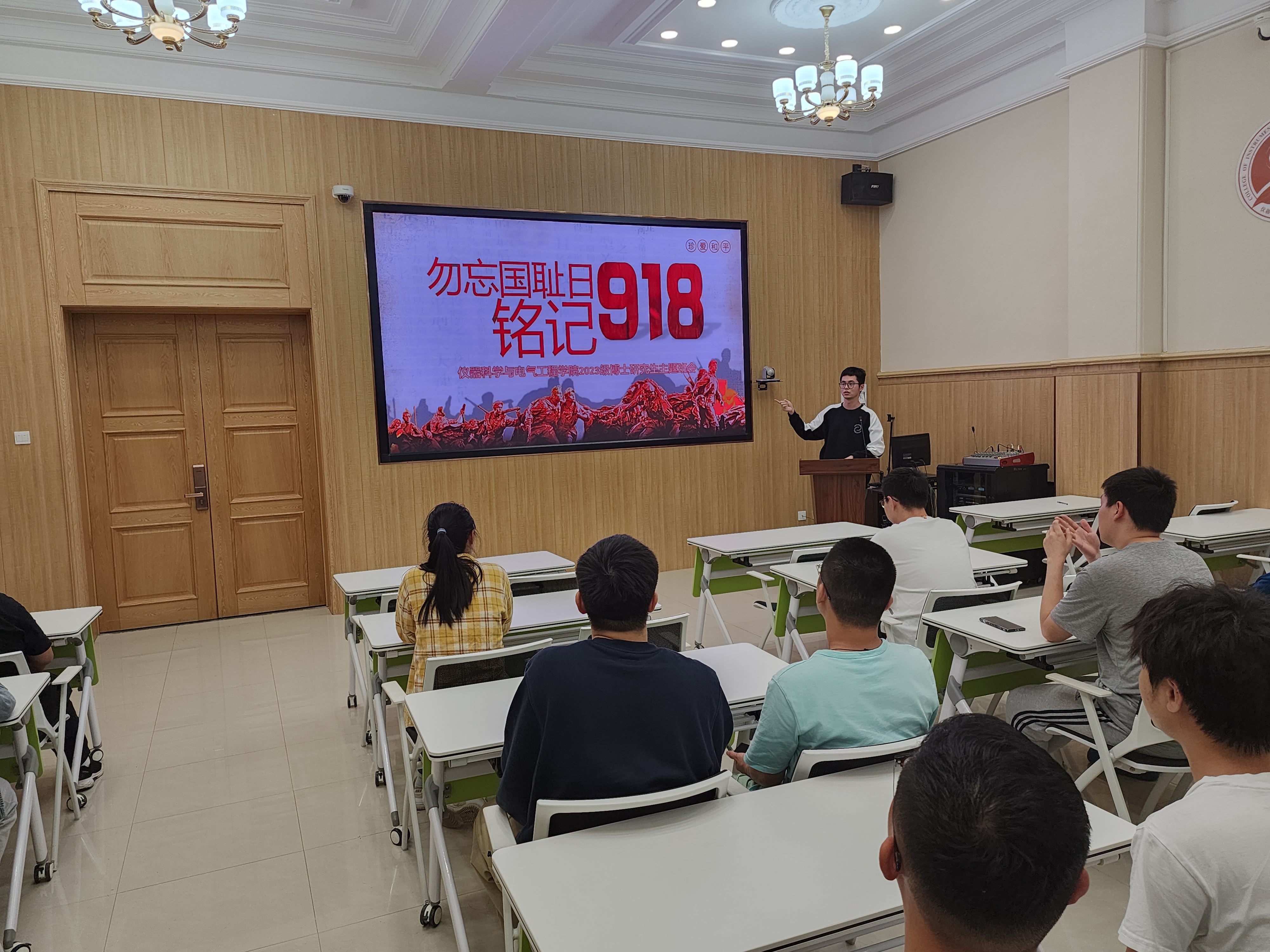 于9月18日晚在地质宫208多功能厅召开了“勿忘国耻日,铭记九·一八”爱国主义与理想信念主题班会。本次班会由2023级博士研究生班长仲维一主持,2023级博士研究生参加本次活动。