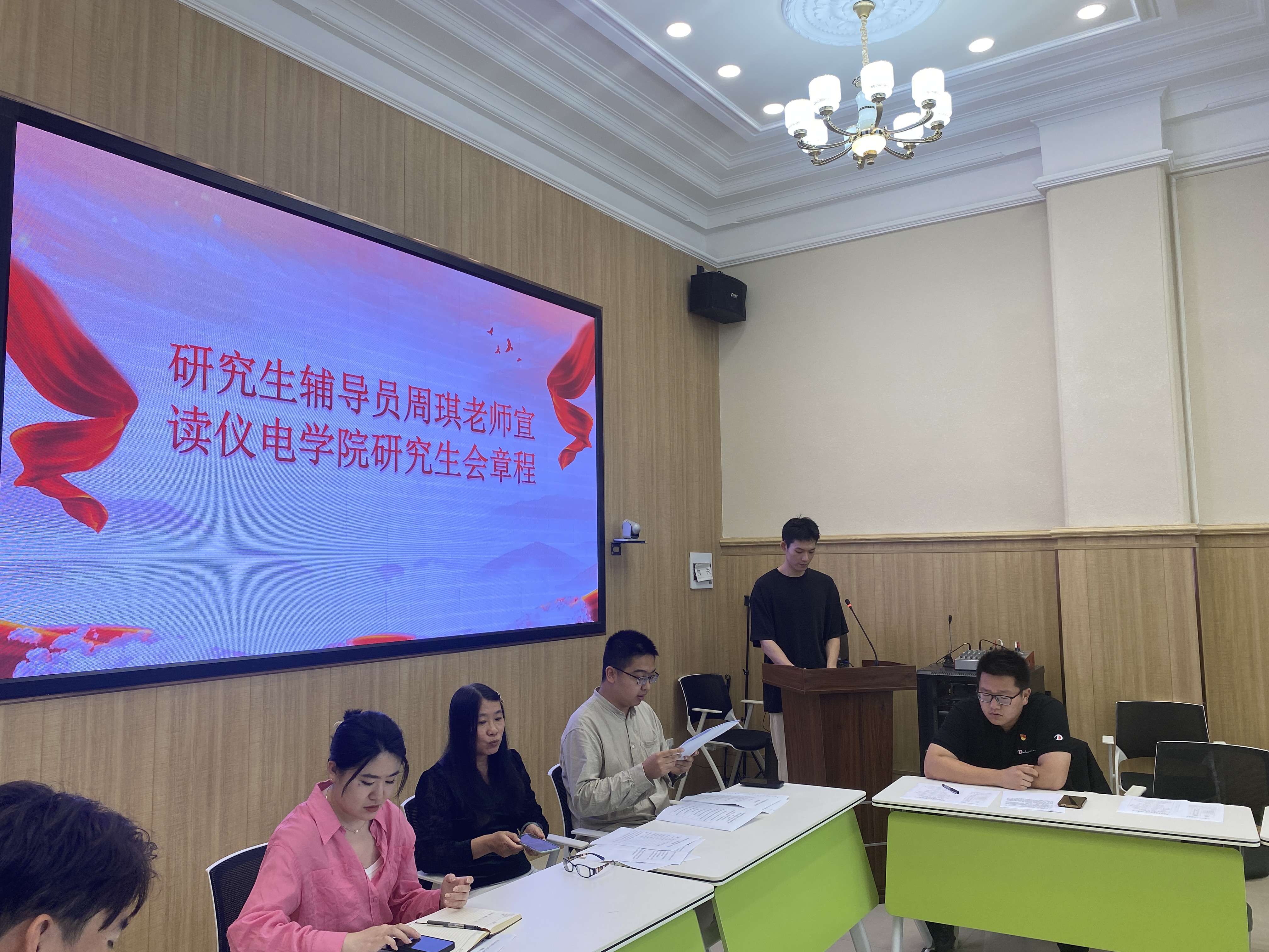 研究生办公室主任杨冬老师、研究生秘书杜晓夏老师、研究生辅导员周琪老师、第七届研究生会全体负责人、第八届研究生会负责人候选人以及各年级研究生代表等参加了大会,会议由2022级硕士研究生班长刘苏辉主持。