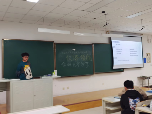 测控技术与仪器专业部分保研同学的去向,让同学们对保研现状有所了解。除此之外,他表示,在大学阶段,与高中生活最大的不同是要找到自己感兴趣的方向并坚持下去,应该以知识本身为主而不是仅仅在于考试。最后,他总结到:‘保研’是一场勇者的博弈。