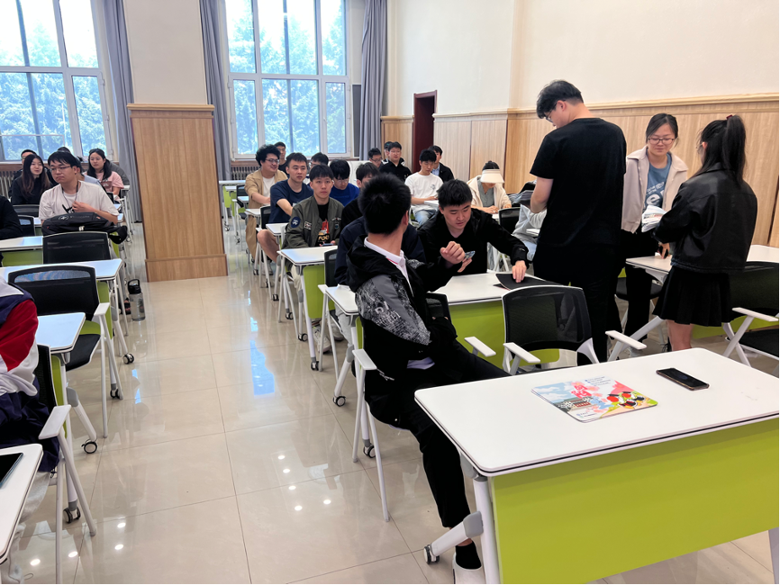 成立了活动筹备小组,设计活动宣传材料和信息发布平台,向全校区研究生征集心理健康主题的鼠标垫设计方案。经层层评选,确定获胜鼠标垫图案。定稿图案融入了众多吉林大学元素和心理健康提示语:两只穿着硕士服和博士服的吉大“校宠”白天鹅分别代表硕士、博士研究生,他们在朝阳校区地质宫门前漫步;被杏花点缀的“向阳而生”标语提醒着研究生在科研生活中,要正确面对压力,时刻关注心理健康,以积极健康的心态迎接挑战。在活动现场,主持人向大家介绍鼠标垫的寓意,向研究生普及心理健康知识并提醒大家关注自身心理健康。随后,各位兼职心理辅导员老师将鼠标垫分发到各位研究生手中,大家接过这些精心设计的鼠标垫,脸上露出了欣喜的笑容。大家围坐在一起,交流着鼠标垫上的提示,分享着彼此的心得体会。这些简短而富有深意的话语,成为了他们相互支持、相互鼓励的桥梁,指引着他们前行的方向。