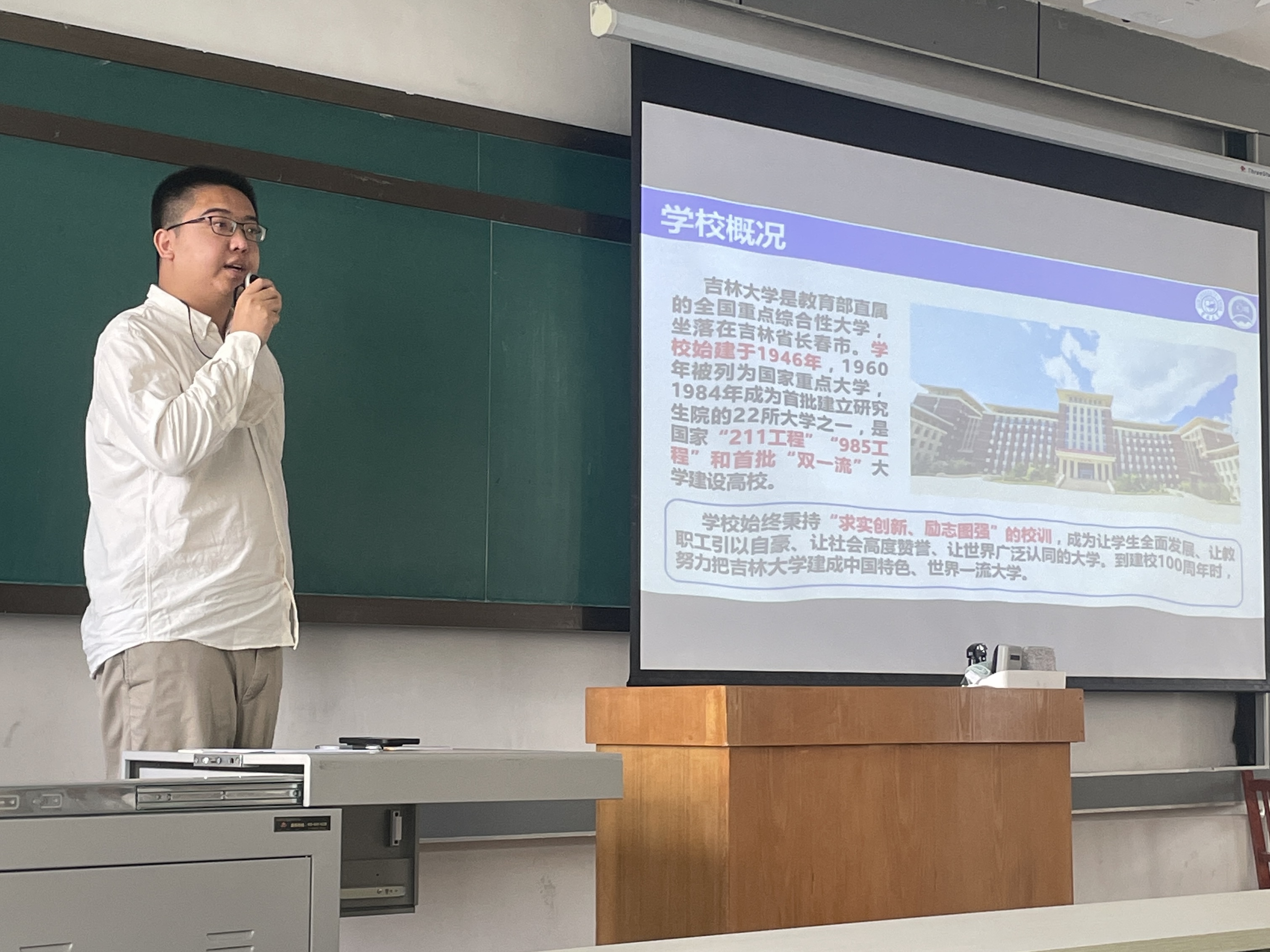 大家庭。随后,周老师详细讲解了校史校情、院史院情。在讲解中,周老师着重介绍了“北上精神”。“北上精神”是吉林大学的精神之源,它承载着吉大的历史与荣耀。无论是在建校办学初期的艰难岁月,还是在建设中国特色、世界一流吉林大学的宏伟进程中,“北上精神”始终激励着一代又一代吉大人持续奋斗,在东北大地上不断书写着吉林大学崛起于祖国北疆的传奇篇章。此外,周老师带领与会研究生学习了习近平总书记对黄大年同志先进事迹作出的重要指示和习近平总书记给全国高校黄大年式教师团队代表的重要回信精神。黄大年老师的先进事迹如同一座灯塔,照亮了同学们前行的道路。周老师鼓励大家以黄大年老师为榜样,做实现中华民族伟大复兴中国梦的追梦人。