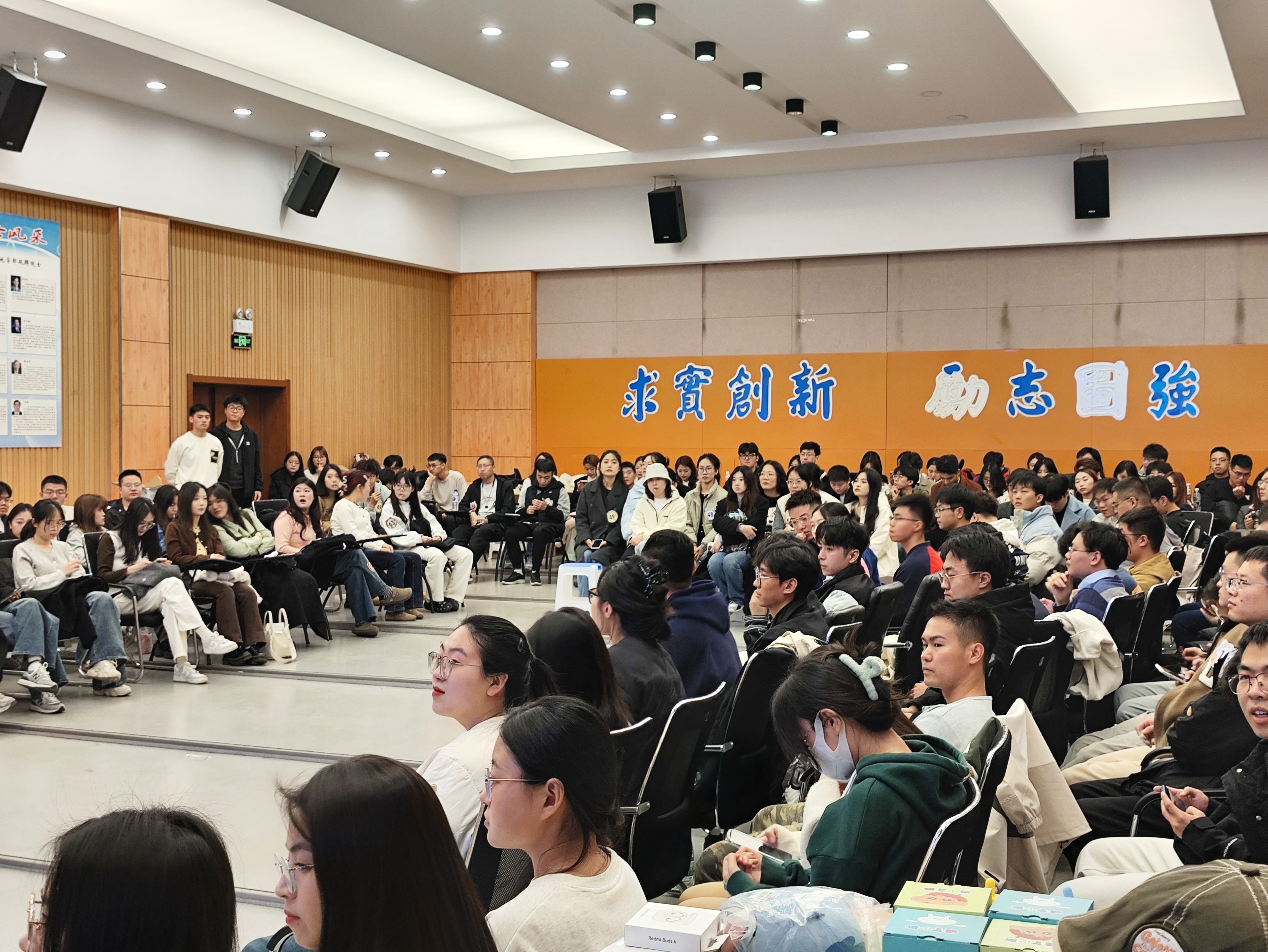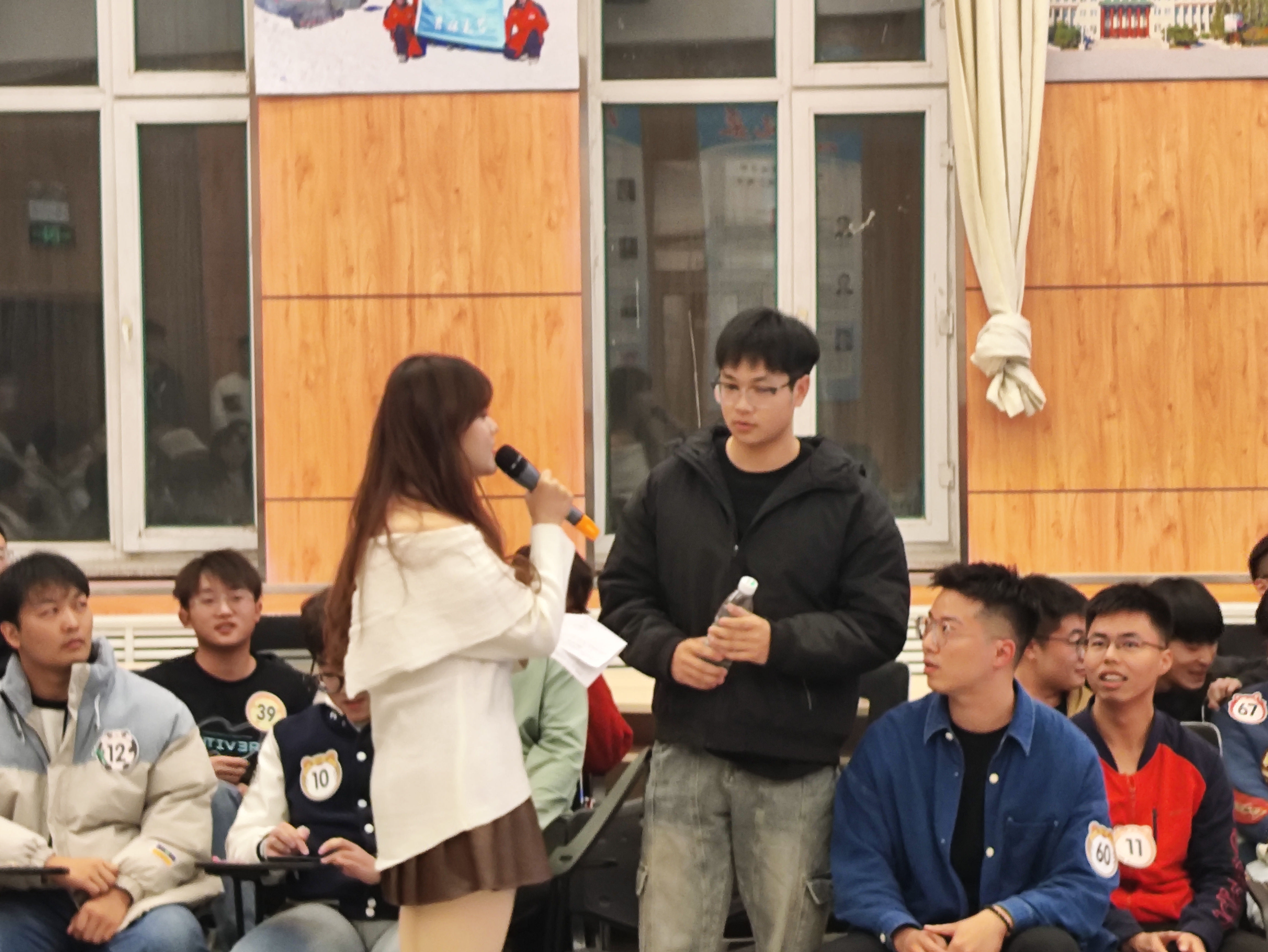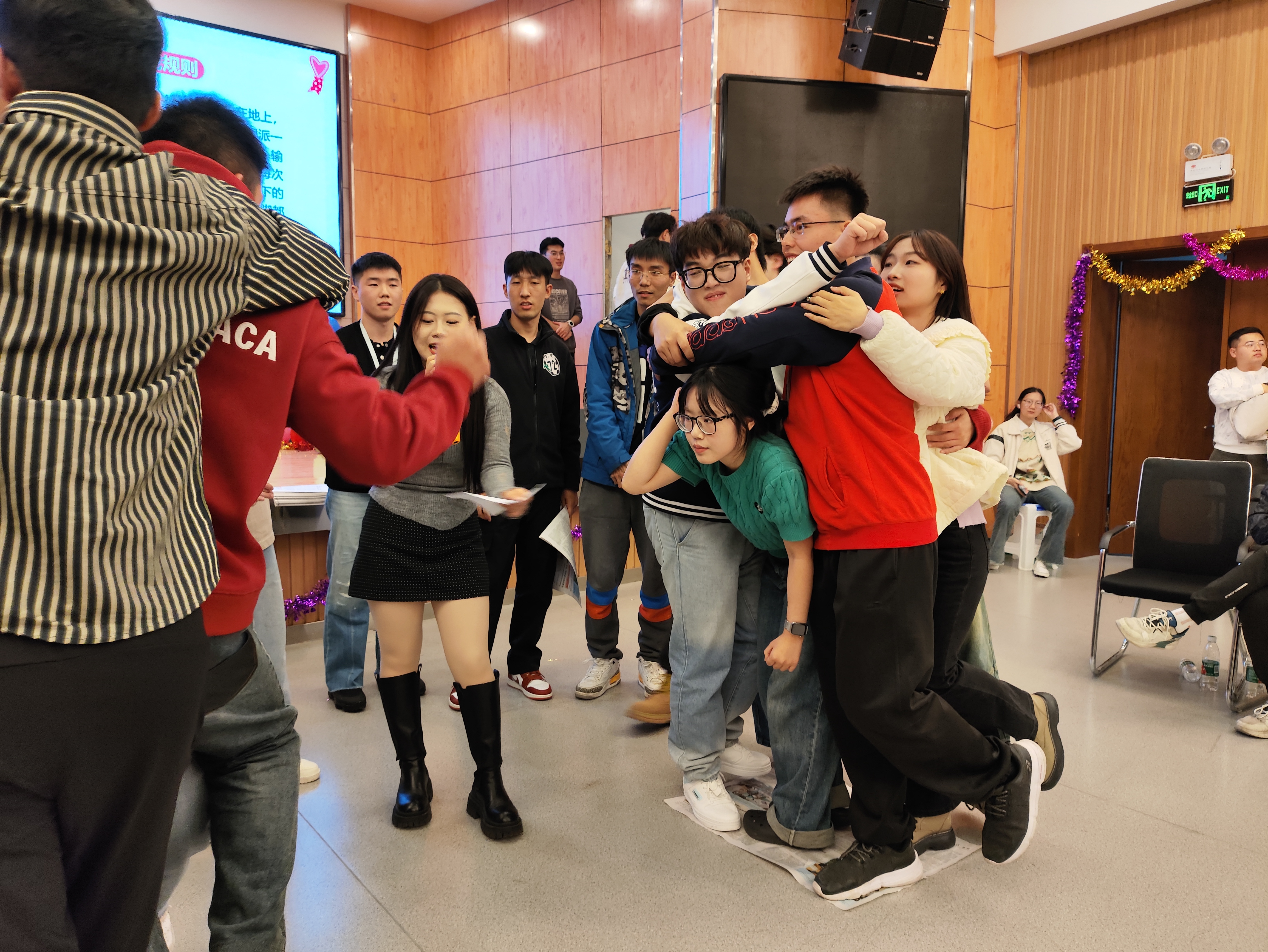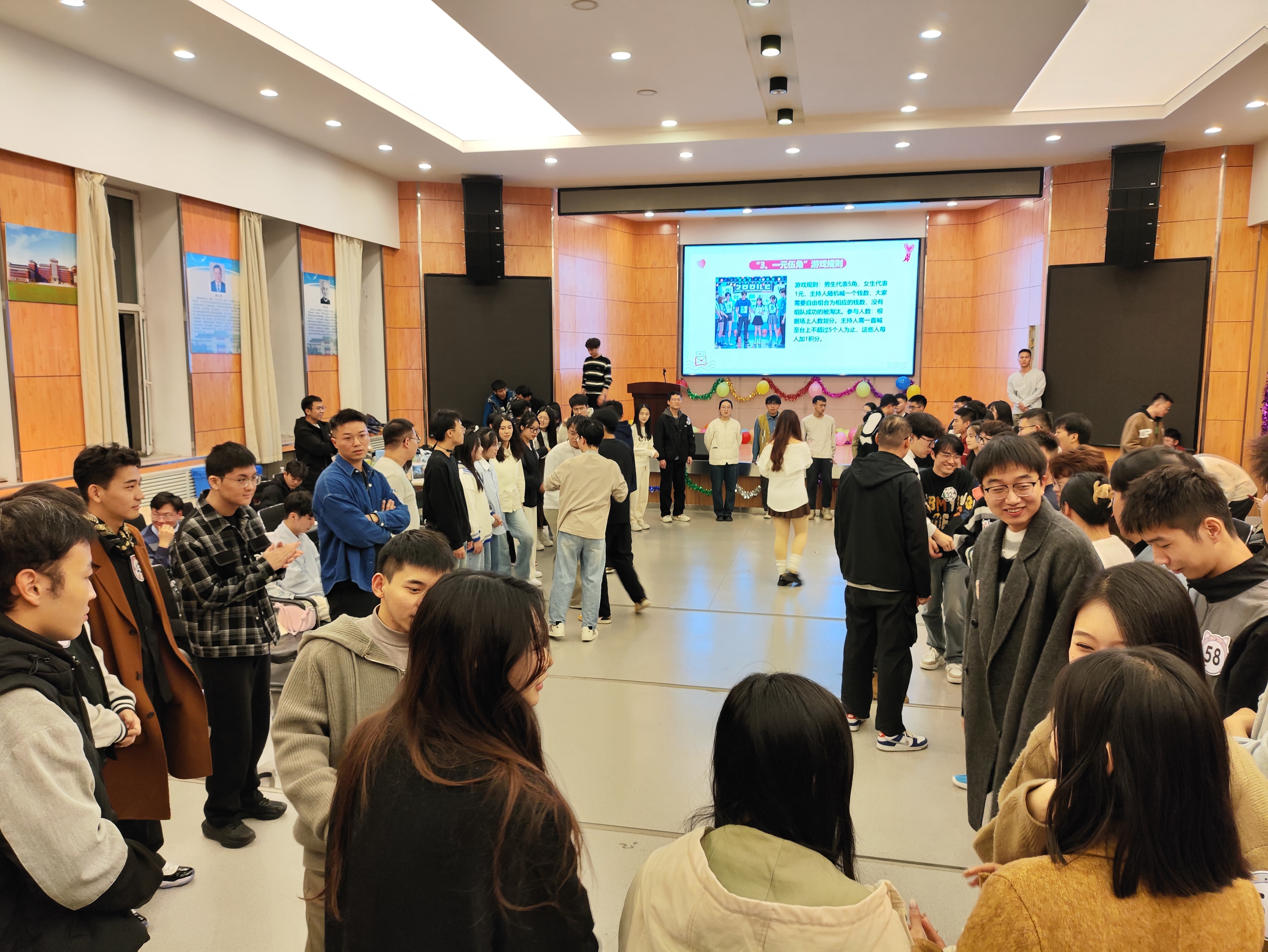 的同学表示了欢迎,为活动定下了轻松愉快的基调。随着破冰小游戏“击鼓传花”的进行,大家在欢声笑语中放下了紧张和拘束,彼此的距离被逐渐拉近,又开展了“答非所问”、“一元伍角”、“叠报纸”、“萝卜蹲”、“泡泡糖”、“气球保卫战”等小游戏。在游戏环节中,同学们挤满了整个会场,时不时引得现场观众捧腹大笑,现场充满了欢声笑语。部分同学还进行了才艺展示,歌声所展现的青春的活力引燃全场,会场氛围达到顶峰,观众们喝彩不断。