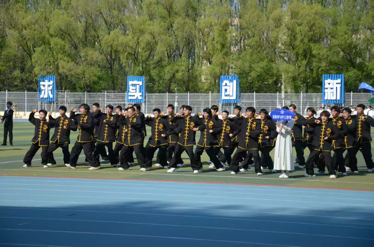 八极拳以刚猛著称,更承载着中华民族坚韧不屈的精神内核,一声响彻全场的“喝”声,刘万鹏,赵智诚等30名同学身着黑色武术服,为我们带来一场热血沸腾的武术盛宴。他们以“撑锤”起势,瞬间迸发的爆发力如雷霆万钧,“震脚发劲”时地面震颤,“崩拳”“顶肘”等招式刚劲迅猛,招招直击要害。刚猛暴烈的招式、雄浑磅礴的气势,充分展现了八极拳“崩撼突击、贴身近发”的独特魅力。