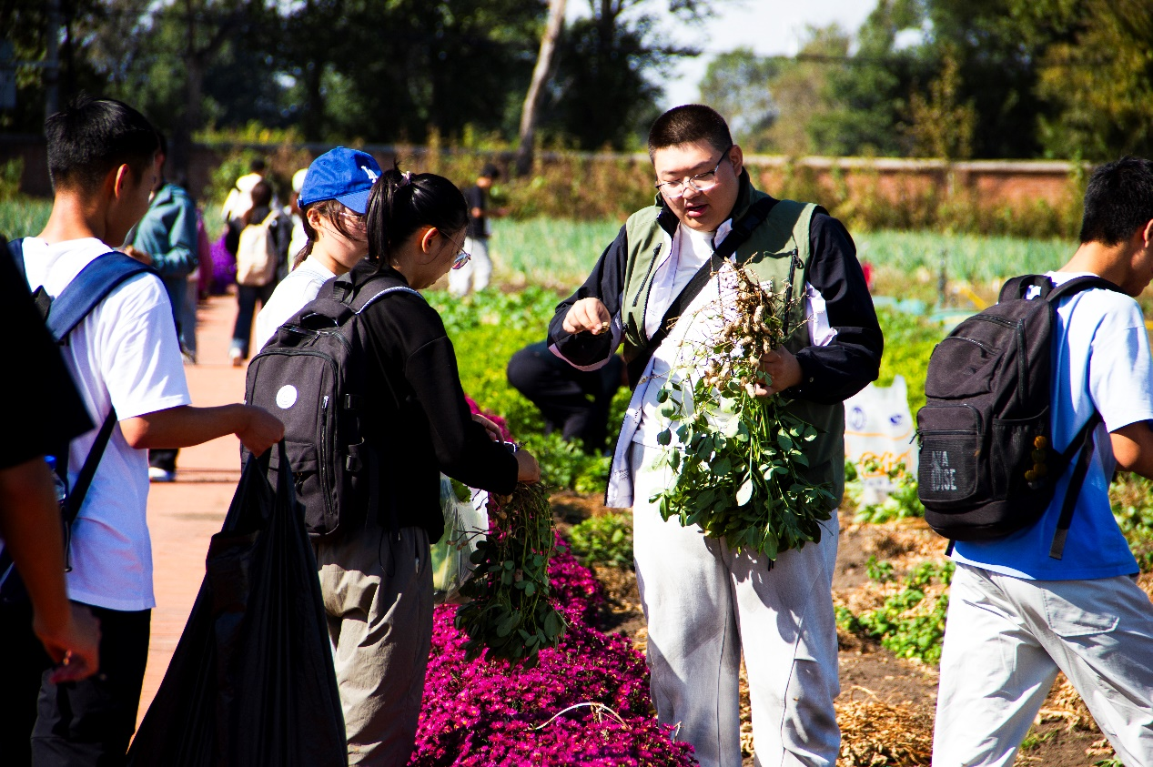 活动现场,同学们深入田间地头,参观吉林大学农业实践基地,了解了先进的智能灌溉系统、作物培育技术,观察科技赋能农业的实践成果,认识了仪器在农业方面的运用。随后,同学们进入田地,亲手采摘蔬菜,共享丰收的喜悦,体验农民收获的辛勤。