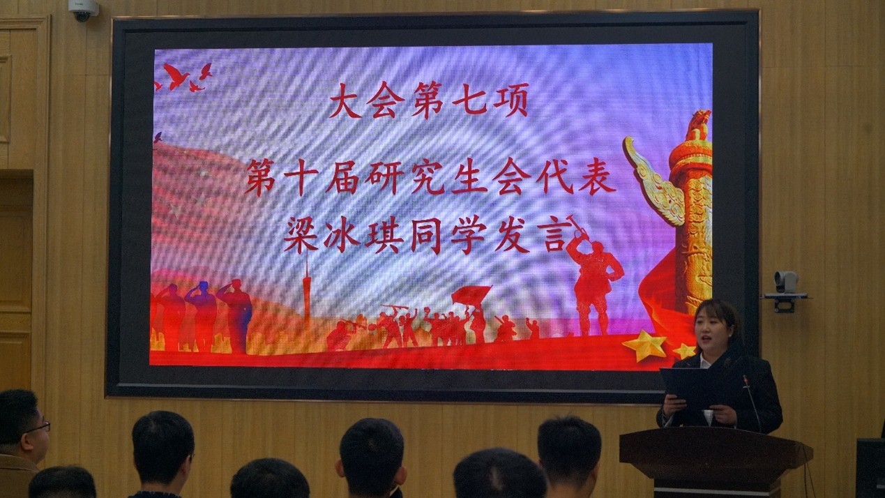 第十届研究生会执行主席梁冰琪在发言中承诺,新一届研究生会将秉承“追求卓越、互助利他”的原则,在科研学术、校园文化、日常服务及思想引领等方面持续拓展,积极倾听同学心声,赋能同学成长。
