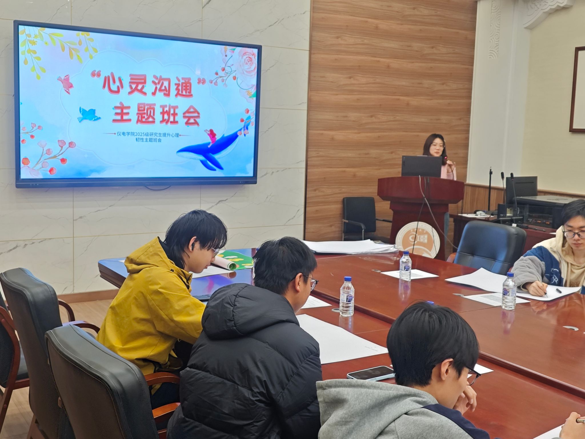 研究生新学期心灵沟通主题班会4月2日在朝阳校区地质宫330顺利召开。本次班会以“提升韧性”为主题,由朋辈心理辅导员马婧涵主持,2025级硕士班长郝金赫协助完成,香港六合彩开奖号码