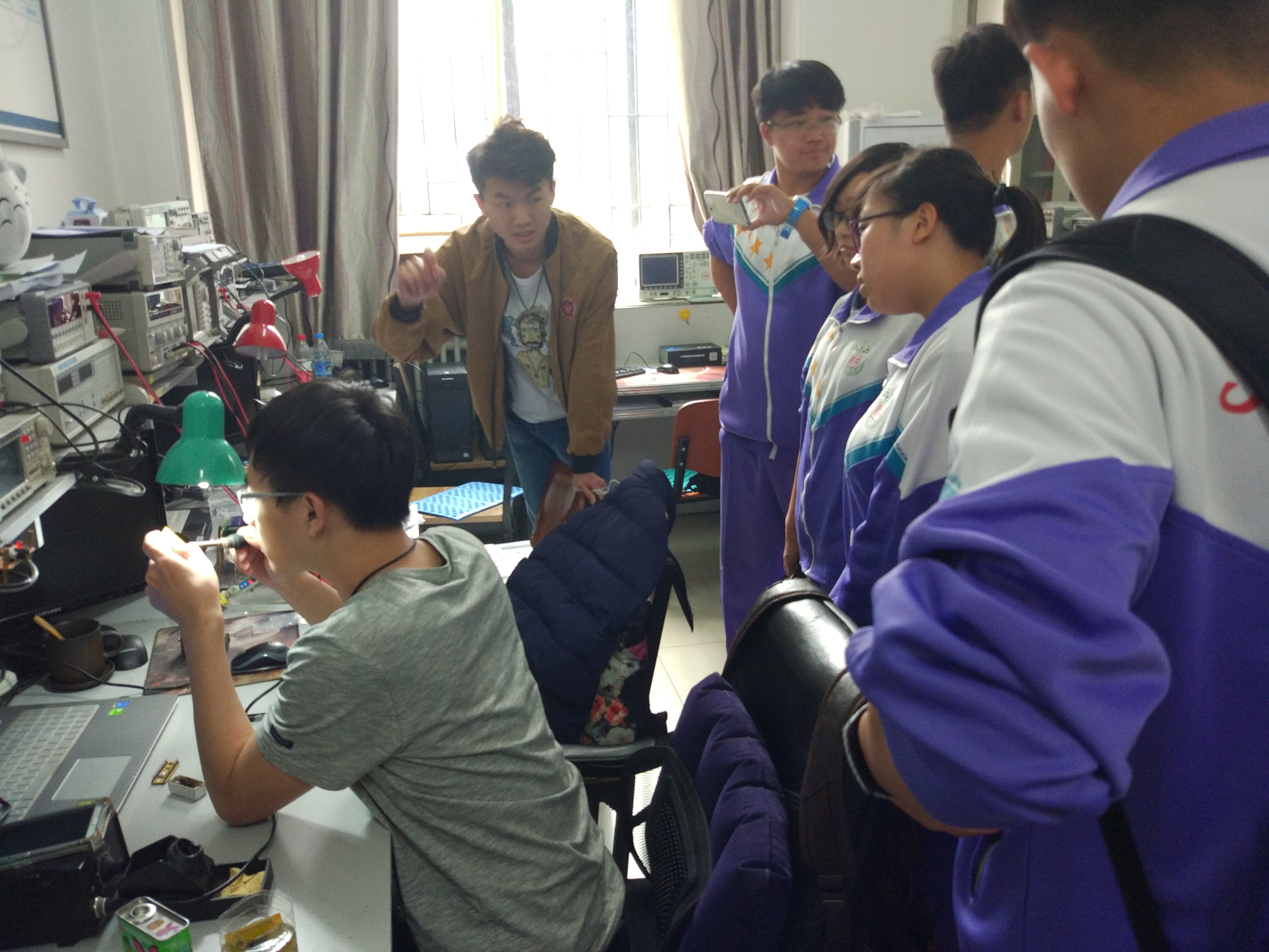 216+实验室,首先科协会长李冰洋为老师、家长以及各位学生代表就216+实验室的整体情况作了详细介绍,然后千老师和张老师便与学生家长进行了深入交谈,学生代表则由科协部长带领分别参观了模电组、电源组以及控制组。参观过程中模电组的同学就实验室的各种仪器设备做了简要的说明,同时以示波器、信号发生器为例作了具体的演示,让同学们了解了仪器的功能及作用;电源组的同学就校赛作品《LED不间断电源控制器》为同学们讲解了电源的工作原理以及重要性;控制组的同学以3D打印机为参观一行人作了详细的演示与讲解,让同学们对控制有了一个大概的认识。随后,大家继续参观了仪电香港六合彩开奖号码