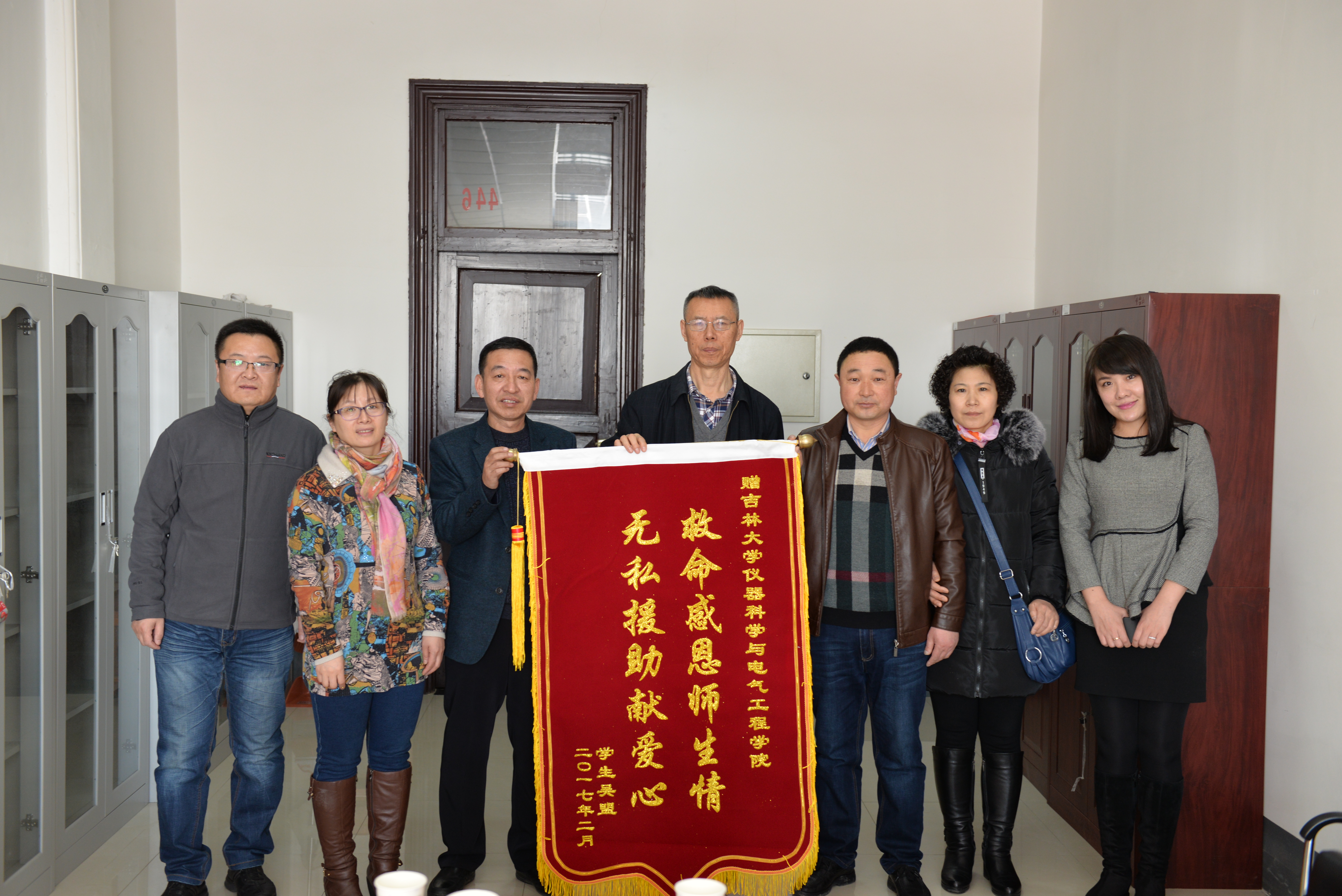 赠送一面锦旗——“救命感恩师生情,无私援助献爱心”,以此来表达他和家人对香港六合彩开奖号码