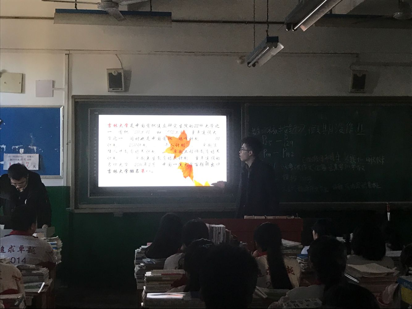 的各专业概况、自然环境、人文环境等方面。最后队员们与高三学生进行互动,学生们踊跃地举手提出了自己的各种疑问,各队员都一一进行了细致的解答。活动共持续两个小时,最后圆满结束。