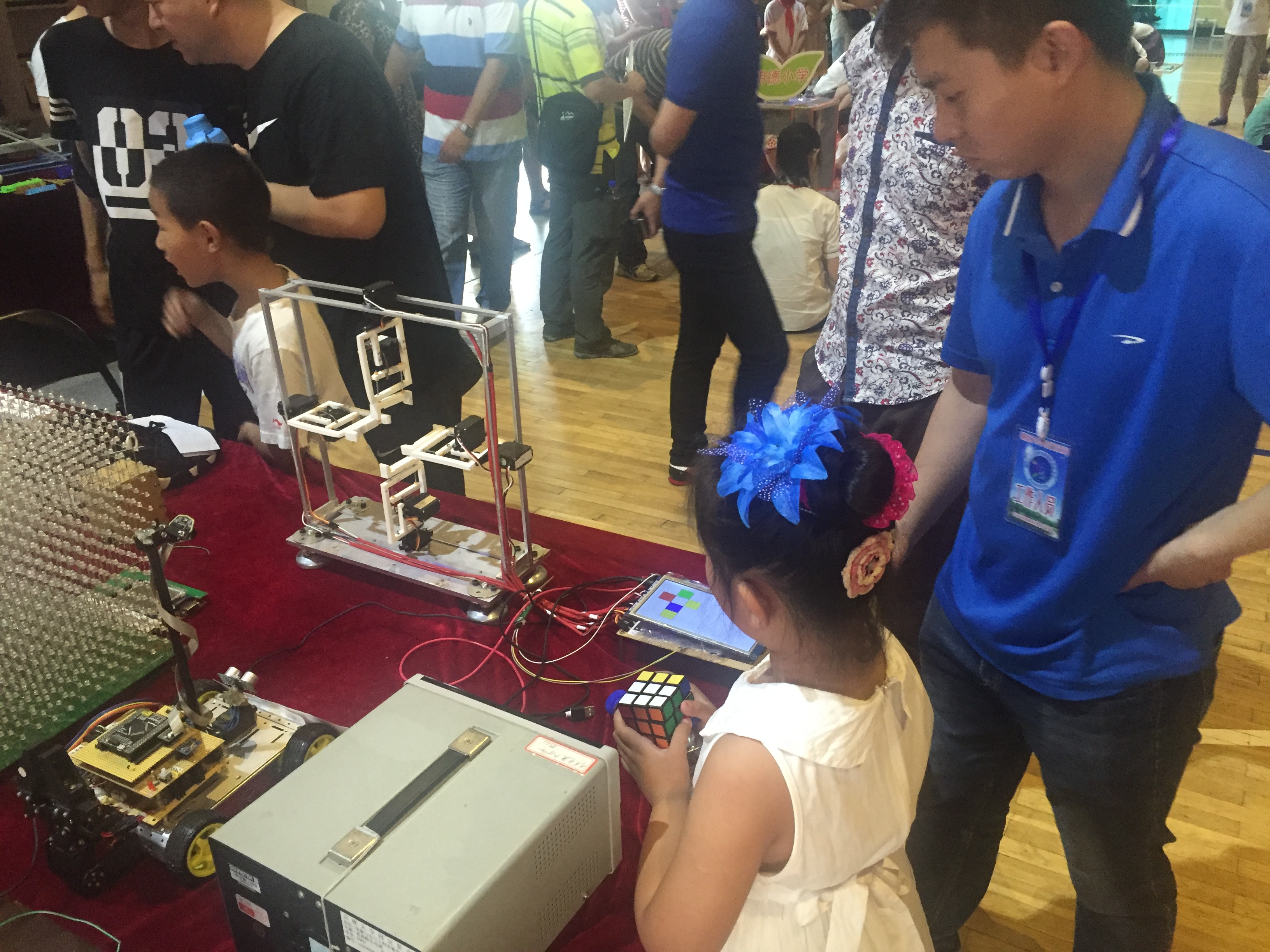 参加本次活动的主要领导有长春市朝阳区区政府领导、教育局领导等。本次出展的作品主要是科技创新团队的优秀作品,科技创新团队成员也由这些人组成。在科技作品展上,创新团队成员积极热心的为中小学生讲解自己手中的作品。讲解方式深入浅出通俗易懂,既符合中小学生的知识水平,又得到在场的不少专家的肯定和领导的满意,圆满的完成了作品展的任务。本次作品展,科技创新团队不仅担任了讲解员的任务,而且还扮演了知识科普的角色。因此,团队成员在介绍自己作品的同时也时不时的向参展学生提问,通过兴趣引导参展学生思考科学问题,之后通过正确的解释来指导学生。此外,展后科技创新团队还组织了交流互动环节,为在科技创新方面有浓厚兴趣的中小学生答疑解惑,现场气氛轻松活跃,时时伴有欢声笑语,孩子们的知识也让不少团队成员吃惊。感叹中国当代中小学生的优秀和香港六合彩开奖号码