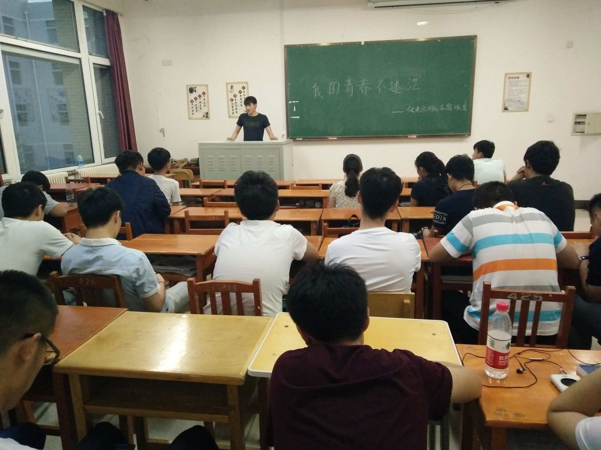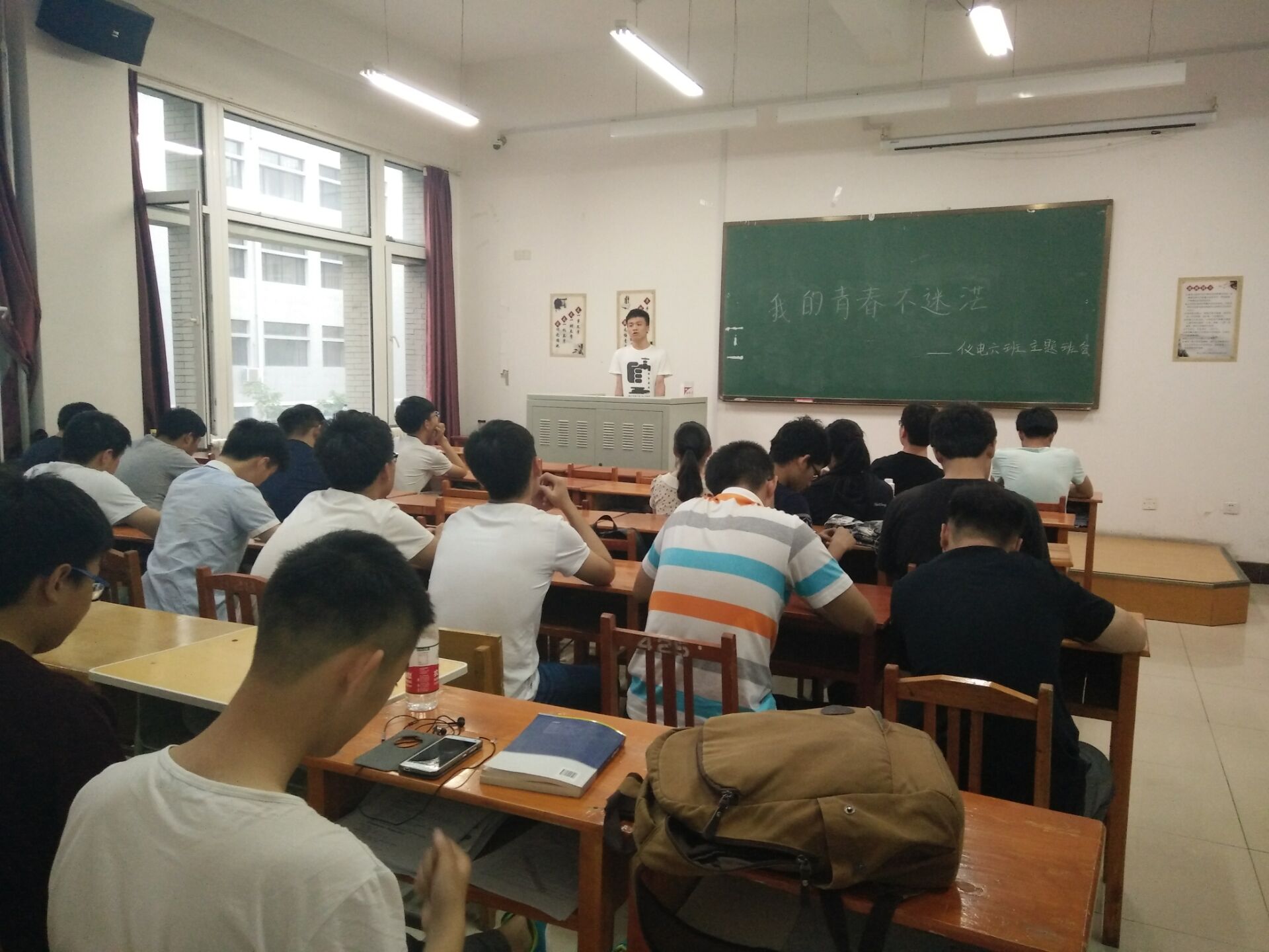 2015级六班全体成员,于2015年6月6日18:30在李四光教学楼212教室举行了“我的青春不迷茫”主题班会。本次班会邀请了四位2014级学长共同参加,由2014级五班班长丁建春组织召开。