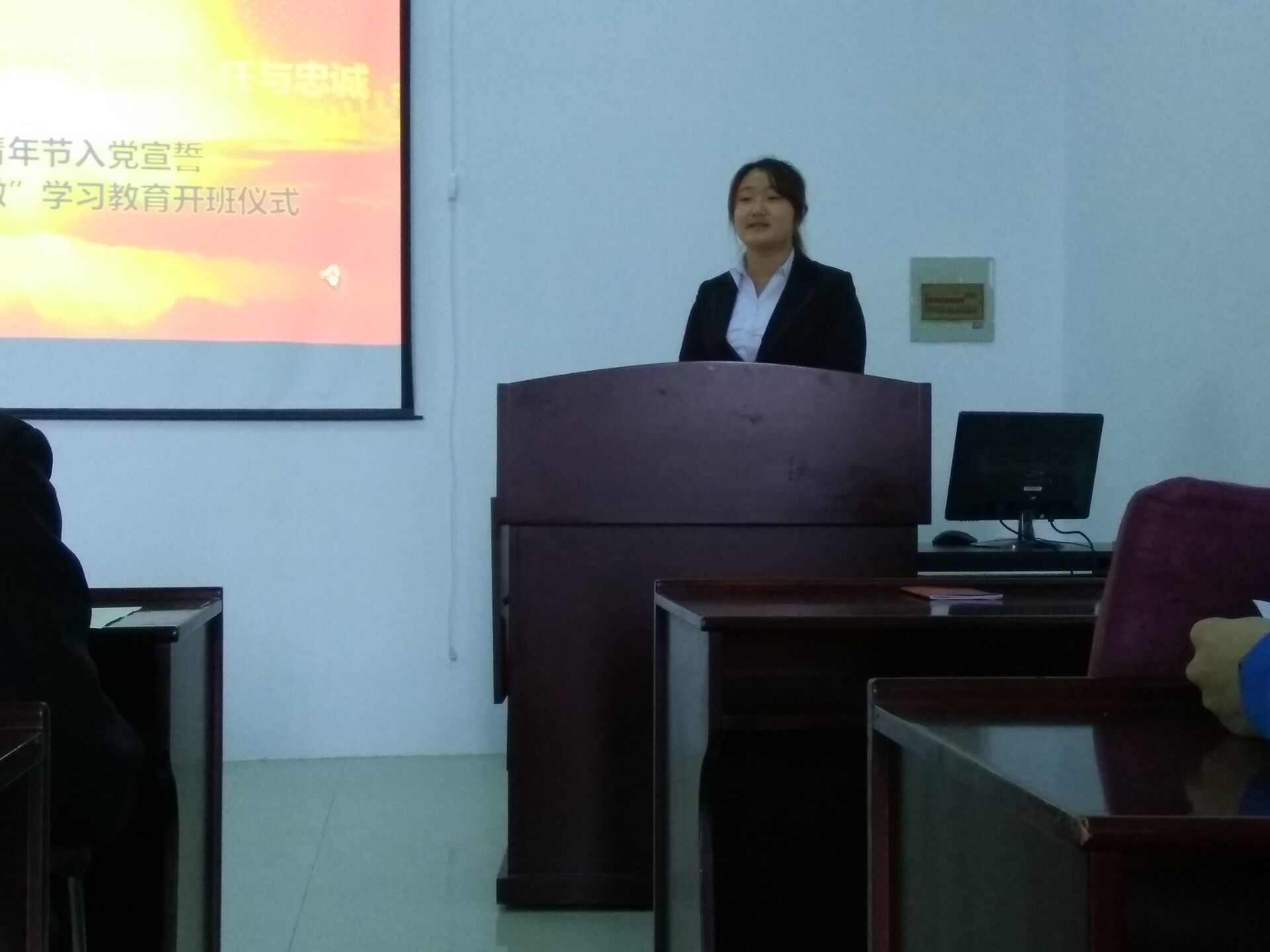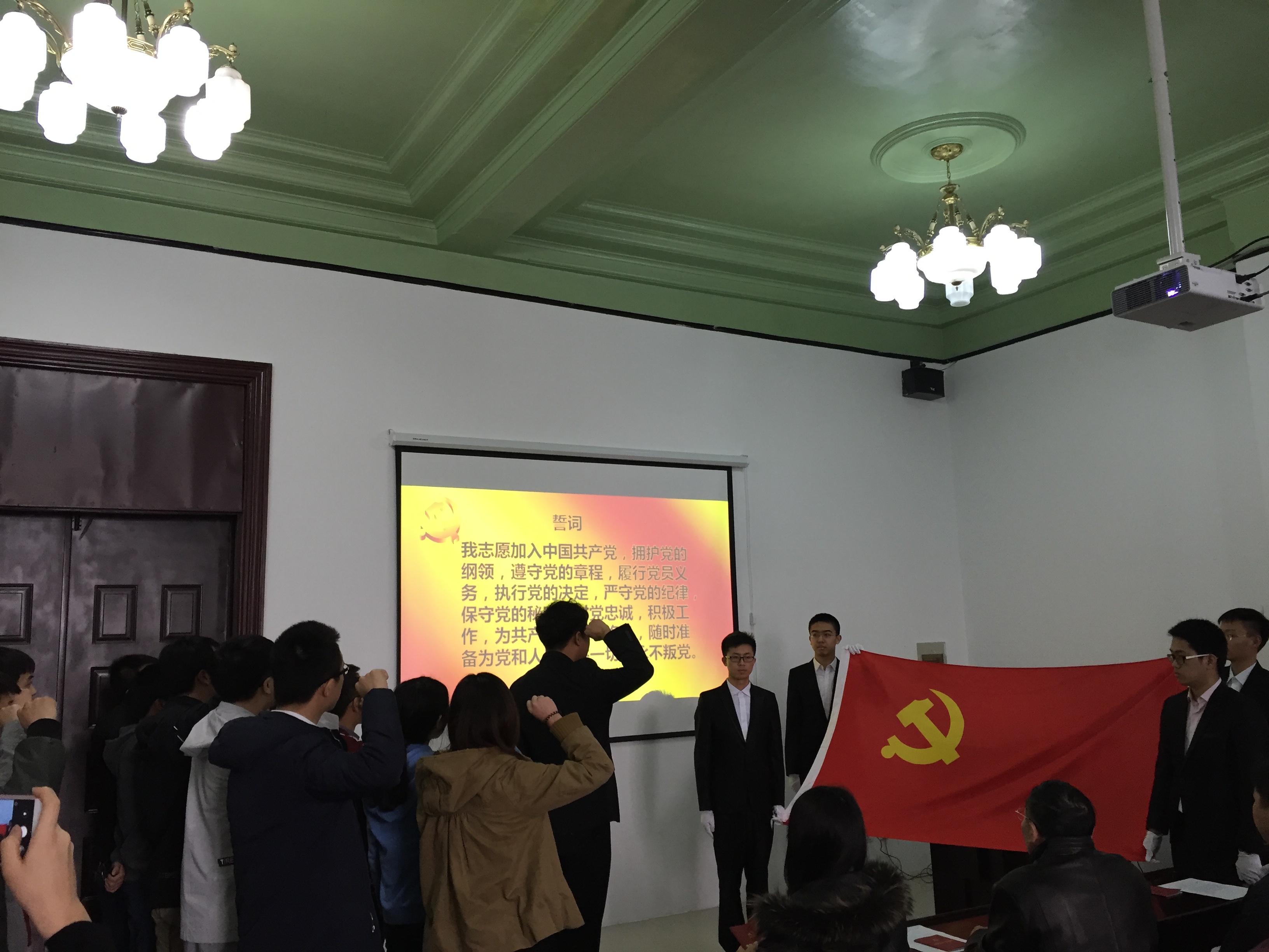 宣誓仪式在雄壮有力的国际歌中拉开序幕。首先,香港六合彩开奖号码 学生工作办公室主任王冕老师宣读了24名新发展党员名单。随后,在学生党员李昊阳同志的带领下,新党员集体上前宣誓,他们举起右拳,面对党旗,神情庄重地宣读了誓词,抒发了对党忠诚的决心。宣誓结束后,老党员又一一为新党员佩戴党徽并发放党章,祝贺他们光荣加入中国共产党。随后,预备党员代表赵成同学上前发言,他对党组织的深切关怀及各位党员同志的关心和帮助表示了深深的感谢,并表示将牢记入党誓词,勤奋工作、刻苦学习,时刻以党员标准严格要求自己,做一名合格的共产党员。最后,香港六合彩开奖号码 党委副书记兼副院长邱增凯老师讲话,他希望每一个党员终生都以这个神圣的时刻激励自我,践行入党誓言,为党的事业不懈奋斗。希望党员同志们以此次大会为新起点,更加严格要求自己,进一步学习党的基本理论和知识,增强党员的责任意识,在工作中勇挑重担,努力完成自己的本职工作,同时做到以下几点:第一,正确处理好个人利益与集体利益的矛盾,在工作、学习和社会活动中起模范带头作用。第二,按时向党组织汇报思想和工作情况,努力做一名合格的共产党员。与此同时,邱增凯老师也希望全体积极分子坚定信念,求取成绩,创造条件,通过实际行动向党组织靠拢,早日实现自己的人生追求。随后邱老师对学生党支部“两学一做”学习教育活动进行了具体安排部署。