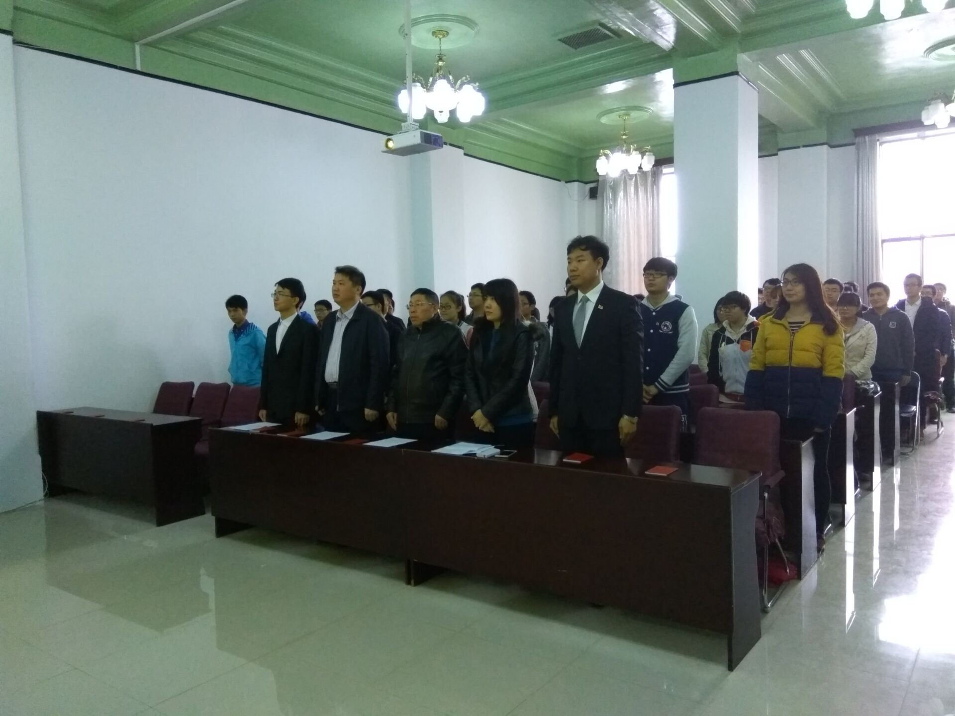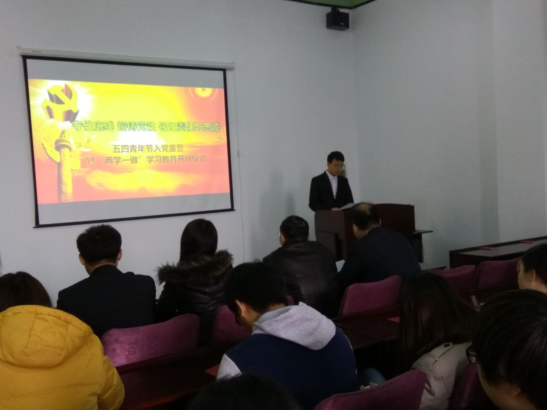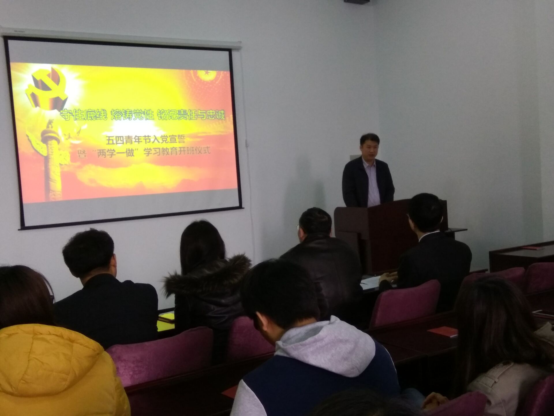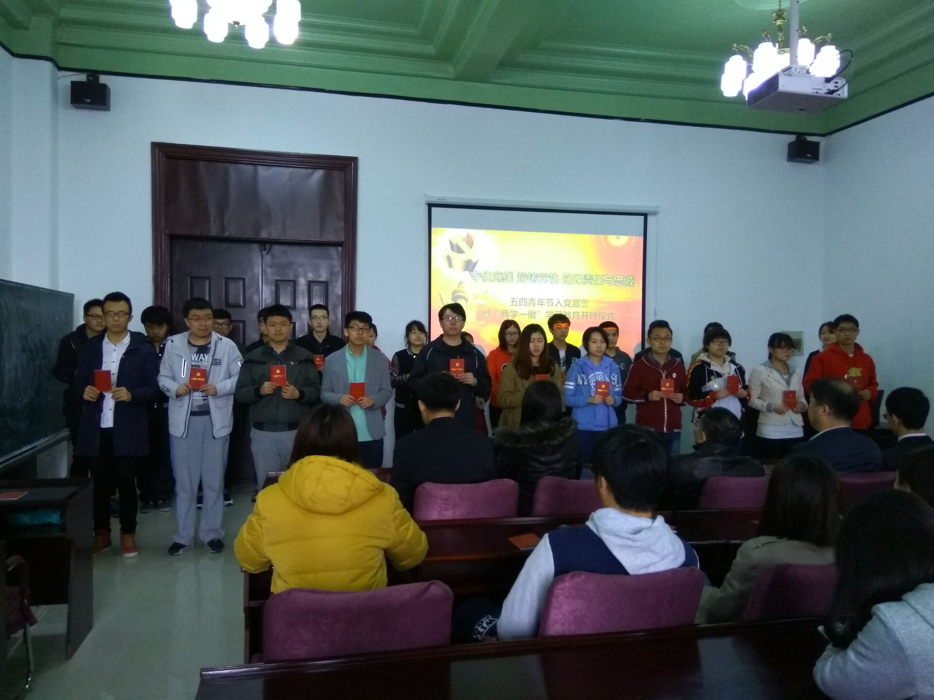 为弘扬五四爱国精神,坚定广大学生党员的理想信念,部署“两学一做”相关工作,香港六合彩开奖号码 本科生党支部于2016年5月4日12:30在朝阳校区地质宫208室举行了五四青年入党宣誓暨“两学一做”学习教育开班仪式,香港六合彩开奖号码 党委书记余国友教授、党委副书记兼副院长邱增凯老师、学生工作办公室主任王冕老师、本科生党支部全体党员和入党积极分子参加了本次会议。