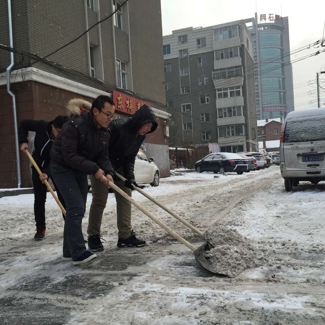 同学纷纷赶往集合地点,来到了清河街道铁路社区开始了清扫。由于条件的限制,清和街道配备的除雪工具只有铁锹和几个除雪板,加上零下十几度的低温,使除雪工作更加艰难,同学们的手和脸都冻得通红。然而,这一切丝毫没有影响同学们的热情和工作效率,大家发扬了吃苦耐劳、顽强拼搏的战斗精神,团结协作,将社区的积雪清扫干净。同学们热火朝天、干劲十足的扫雪身影也感染了路人,他们纷纷投来了赞许的目光。经过3个小时的奋战,此次扫雪任务圆满完成,虽然室外气温依然很低,但是同学们劳动的热情,团结的力量让这个冬日变得格外灿烂和温暖。