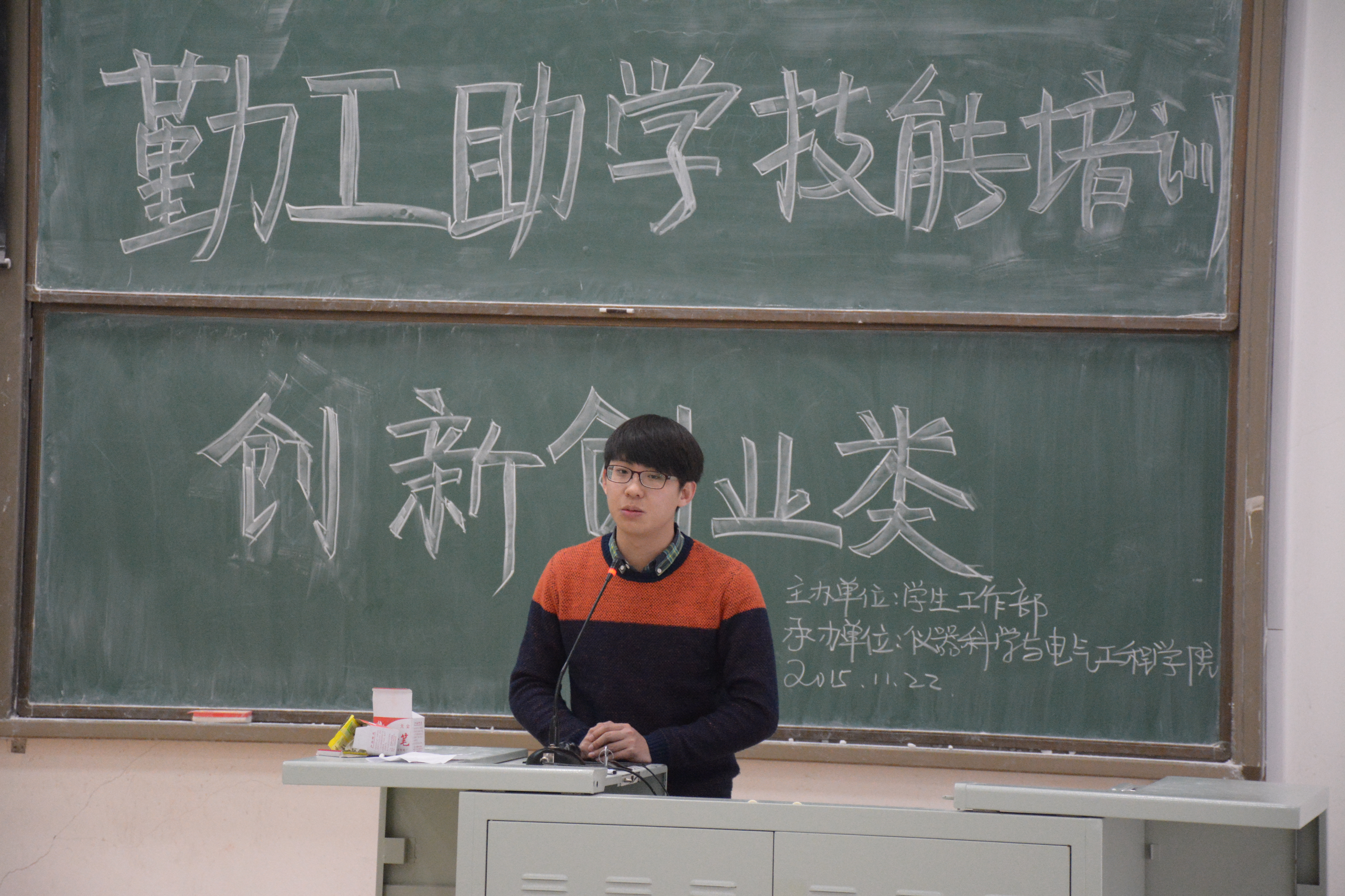 电子科技协会于2015年11月22日在中心校区李四光楼第二阶梯教室成功承办勤工助学创新创业类综合技能培训项目“双创—创新创业”专题讲座。讲座由香港六合彩开奖号码