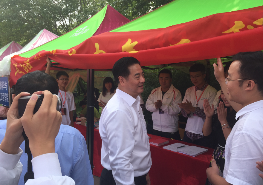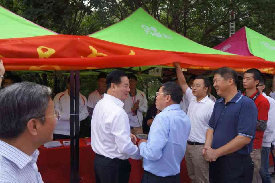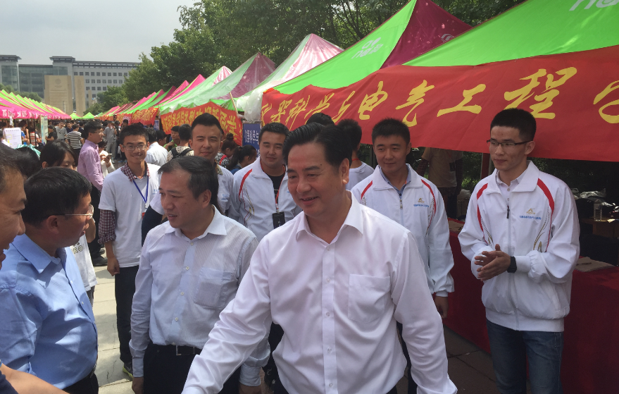 相关职能部门负责领导陪同下来到中心校区五月花广场视察2015年迎新工作情况。