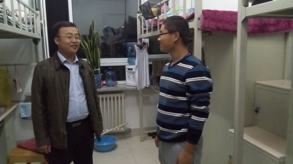 新生辅导员张昊宇老师一一走访各宿舍与同学们进行亲切交谈。张老师细心地询问同学们今天的节日行程以及对新学习生活的看法,大多数同学家在异地,张老师嘱咐同学们一定要给父母长辈们带去节日祝福和问候。同学们轻松地与老师交流自己的学习情况、寝室生活,并提出自己的未来展望,张老师觉得很欣慰。在走访寝室时,看到有些同学节日期间网游娱乐,老师还幽默地和同学们讨论游戏术语,同时叮嘱同学适当娱乐,切勿耽误正常的上课学习。临走前,张老师还不忘叮嘱同学们要注意室内通风,天气转冷多添衣物。在老师和新同学的交谈中,看不出代沟与陌生,只有轻松和融洽。同学们都十分感谢辅导员老师的中秋祝福,让他们感受到如家的温暖。