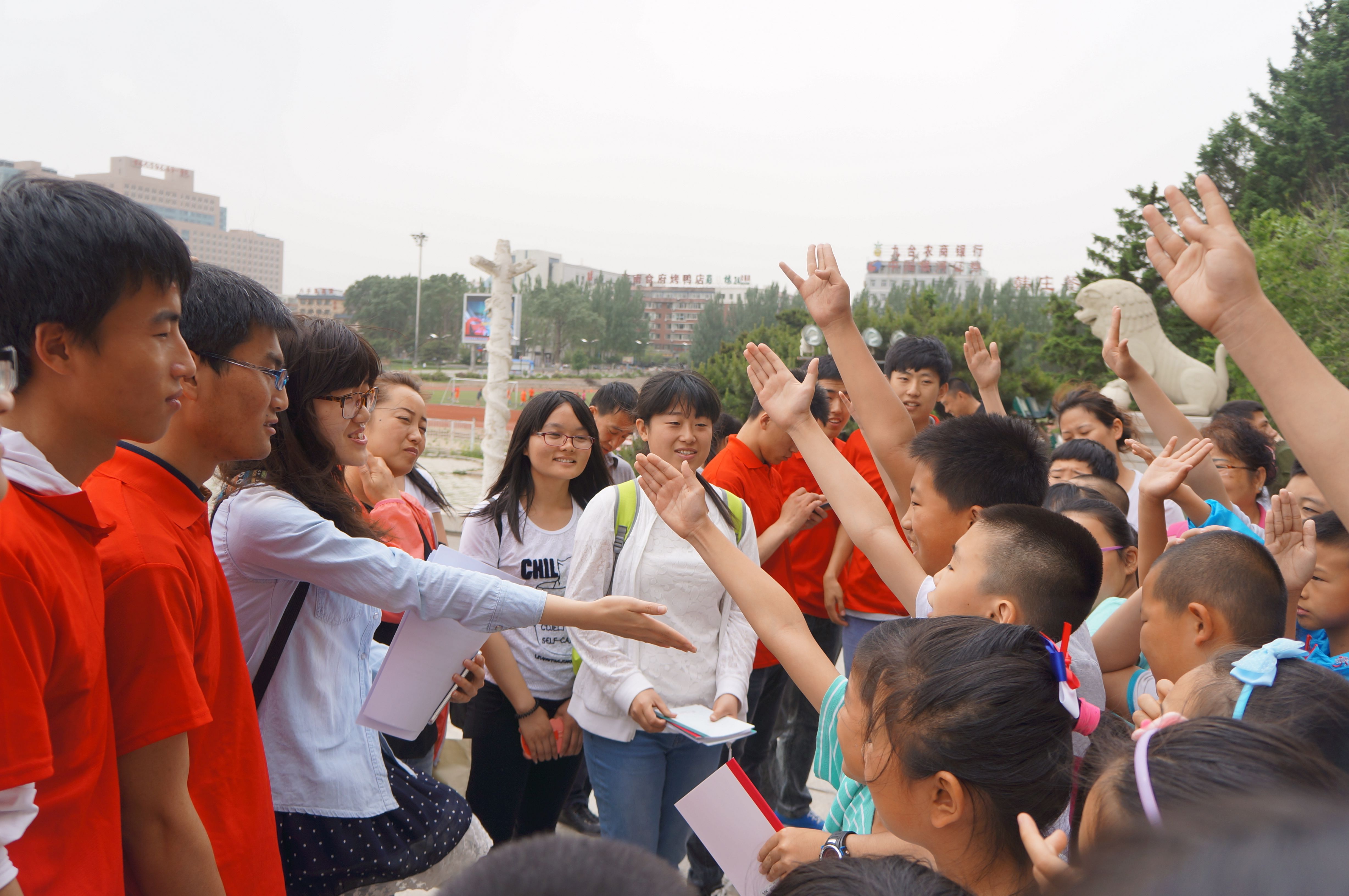 本次活动于下午1点在文化广场地质宫门前的素质拓展场地进行。志愿者们首先为同学们分好队伍。接着,同学们协力完成了“找朋友”拼图游戏,在欢快热烈的气氛中,孩子们忘记了起初的羞涩,完完全全投入到和同伴的互动中来,这不但增进了他们的友情,还培养了他们的团队协作能力。随后,大学生志愿者和孩子们配合完成了“你画我猜”游戏,在志愿者们的积极调动下,现场的气氛越来越热烈,志愿者和孩子们之间的配合越来越默契,感情也进一步深厚起来。游戏结束,志愿者为优胜队伍分发了奖品,鼓励所有的孩子力争上游,做时代的弄潮儿。
