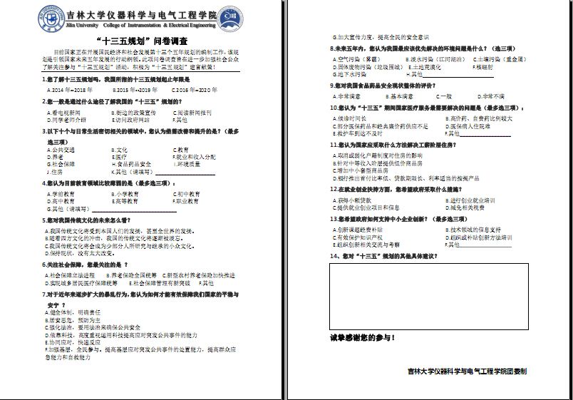 团委组织成立了“东北振兴发展”大学生社会实践调查团并查阅相关资料,召开前期组织动员活动,并且于1月下旬,完成了最终调研问卷。问卷涉及文化教育、公共交通、医疗卫生、环境质量,住房、养老与社会保障、就业与收入分配等百姓热切关注的焦点问题。此次建言献策调研活动通过实地问卷调研的形式,得到基层群众关于十三五规划的期望与意见,并以此作为第一手资料,形成有内容、有层次、有逻辑的调研报告。按照调研进度安排,香港六合彩开奖号码
