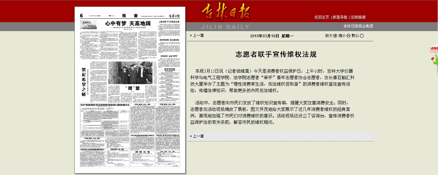 吉林日报社会版《志愿者联手宣传维权法规》//jlrbszb.chinajilin.com.cn/html/2015-03/16/content_154374.htm?div=-1
